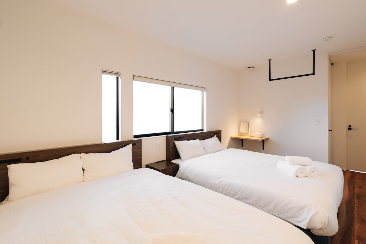 This Condominium is very new built in 2015 Apr. There are living space, kitchen,bathroom,landaury, bedroom and balcony.With 2beds and 3 Futons which use on Japanese Tatami. You would enjoy at beautful beach in front, also sunset from here.