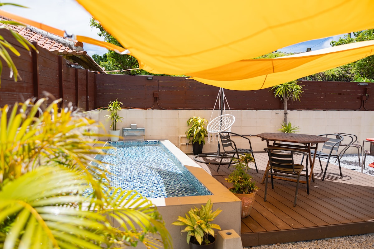全新装修!名护 3 卧 3 卫 1 厨独立房屋 / 完全私密的庭院内设有游泳池和烧烤设施 / 三间充满乐趣的概念客房