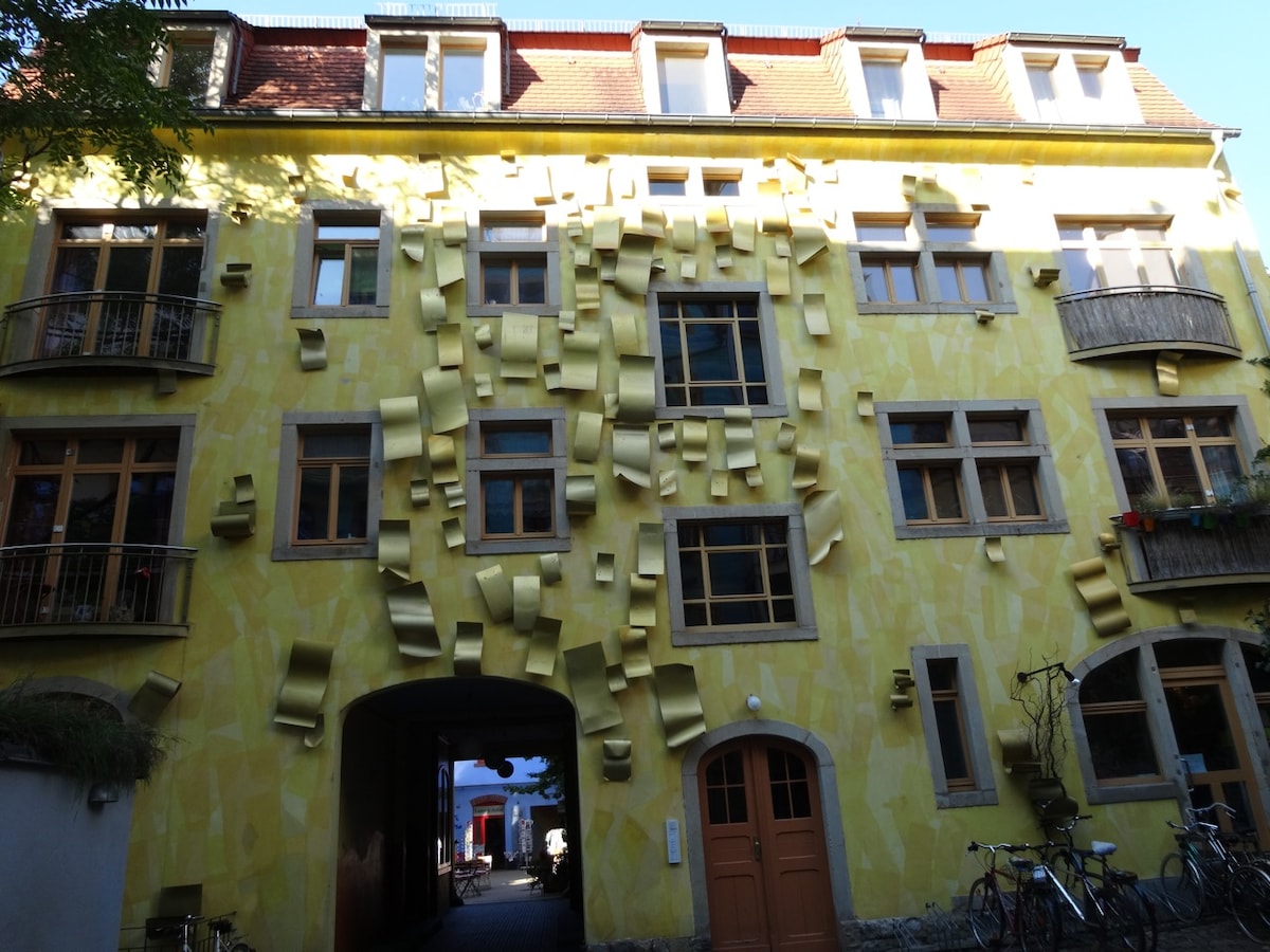 Bei dieser besonderen Unterkunft sind alle wichtigen Anlaufpunkte ganz in der Nähe – so wird die Planung deines Aufenthalts ganz einfach. Im 6.OG mit Balkon kann man bis zur Frauenkirche sehen und ist mitten im Sceneviertel Neustadt und doch in seiner eigenen Welt!