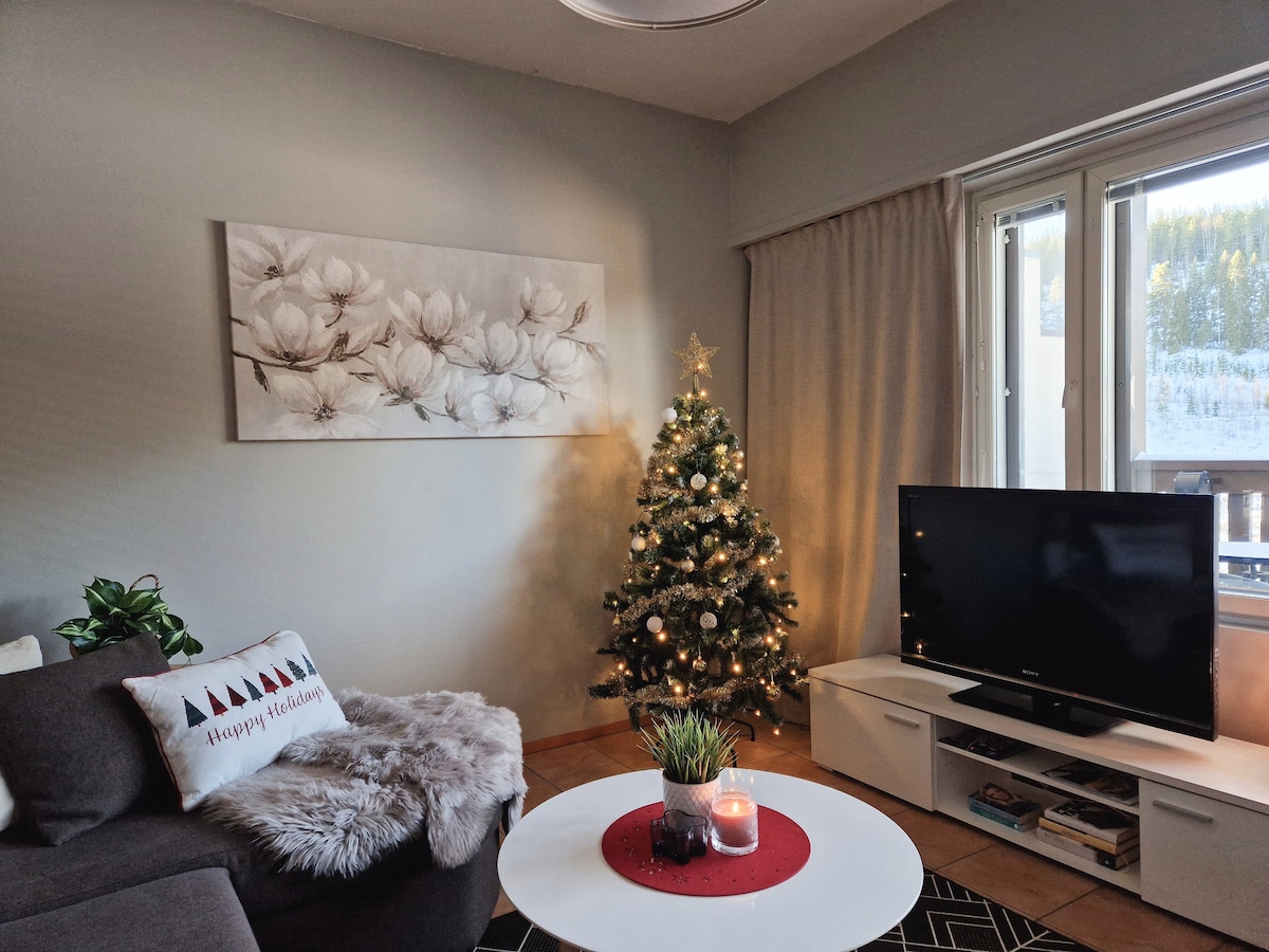 Ylimmän kerroksen rauhallinen asunto ydinkeskustassa. Kaksi makuhuonetta, joissa toisessa 160 cm parisänky ja toisessa 80 cm sängyt. Sängyt valmiiksi pedatut. Olohuoneessa on levitettävä 144 cm leveä vuodesohva. Ranskalainen parveke ja tilava sauna. Lapsille kirjoja ja leluja. Myös vauvansänky ja syöttötuoli saatavissa lisävarusteina. Ilmaisesta autohallista suoraan hissillä asuntoon. Joustava sisäänkirjautuminen. Autohallin max sisäänajokorkeus 2.0 m