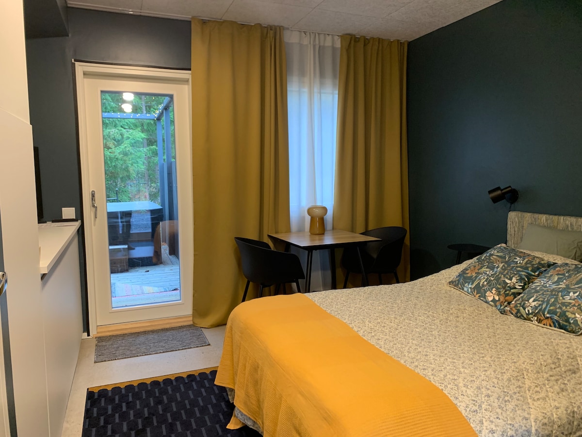 Meillä pääset nauttimaan puusaunan löylyistä ja rentoutumaan ulkoporealtaassa. Huoneistossa sinulla on käytössäsi 140 cm parisänky, ruokapöytä, pukuhuone pesutiloineen, wc, jääkaappi, mikroaaltouuni sekä vedenkeitin. Tontilla on myös autokatos, jossa sähköauton latausmahdollisuus (lisämaksusta). Huoneisto sijaitsee omakotitalon pihapiirissä, erillisessä rakennuksessa. Hyvät ulkoilumaastot mm patikointiin ja frisbeegolfiin. Lakanat ja pyyhkeet sisältyvät hintaan, samoin poreallas ja sauna.