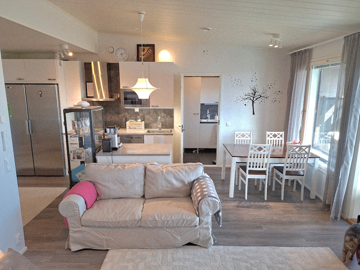 Tilava kaksio (52m2) hyvällä sijainnilla keskustassa satamassa. Iso parveke etelään järvinäkymällä. Autolle maksuton paikka alakerran lämpimässä autohallissa, kulku hissillä asuntoon. Sähköauton lataus, veloitus kulutuksen mukaan. Esteetön kulku. Viilentävä ilmalämpöpumppu. Yksi makuuhuone, jossa 160cm runkopatjasänky. Olohuoneessa on divaanivuodesohva (140cm). Lisäksi tarvittaessa ilmapatja 80cm. Asukkaan käytettävissä taloyhtiön kuntosali 1. kerroksessa, jossa kattava kotisalivarustus.