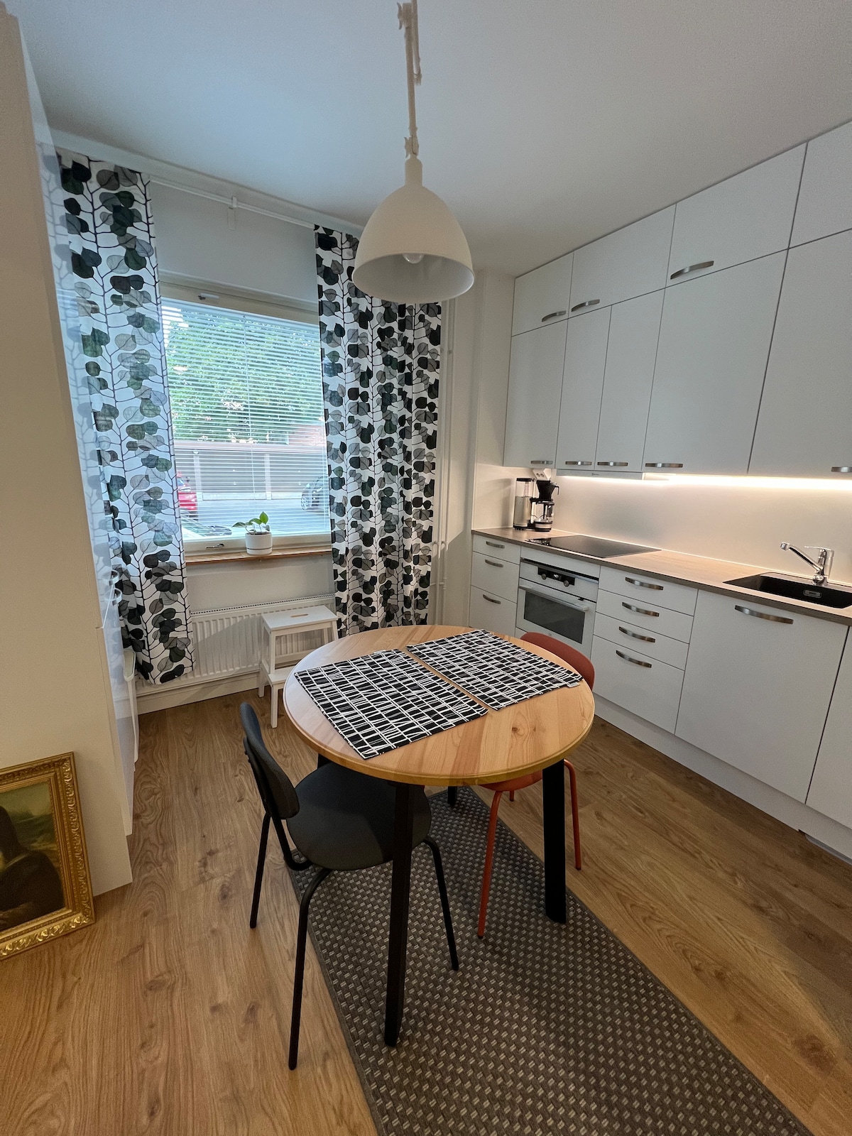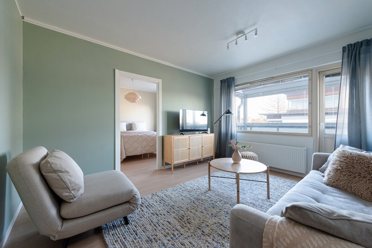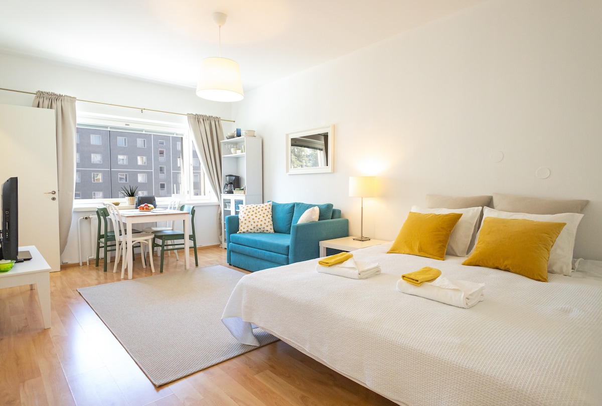 Tervetuloa majoittumaan uuteen yksiöön loistavalla sijainnilla! • Lähellä ilmaisia kadunvarsiparkkeja • 9min kävely juna- ja bussiasemalle, torille 5min • Laadukkaasti kalustettu • Erinomaiset sängyt kahdelle • Puhtaat lakanat, kattavat keittiövälineet, hygieniatuotteet ja kuivaava pesukone • Chromecast, Wifi, kirjat, pelit • Lähellä nähtävyydet ja palvelut "Kaunis ja puhdas asunto, Kuin parempaan hotellihuoneeseen olisi astunut! Majoittaja on ihanan avulias ja ystävällinen."