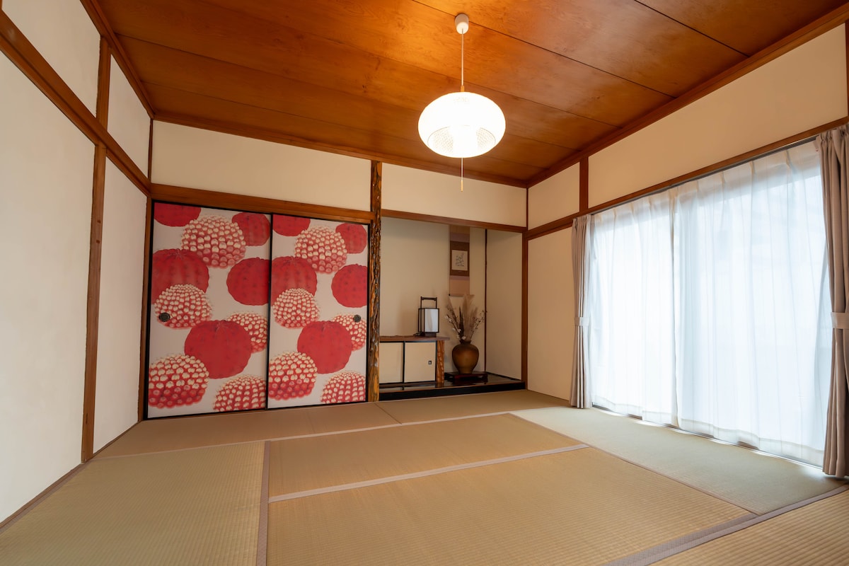 Itâs located in a village called Karato Oka. Youâll find the Teshima Museum and rice terraces within a short walking. The guesthouse is a Japanese wooden house with only one room, so you can use privately. The room on the second floor has a slightly lower ceiling, giving it a cozy cabin or tea room feel. From the window, you can see old houses, mountains, and persimmon trees, with the morning light streaming in. Experience an extraordinary space and time.