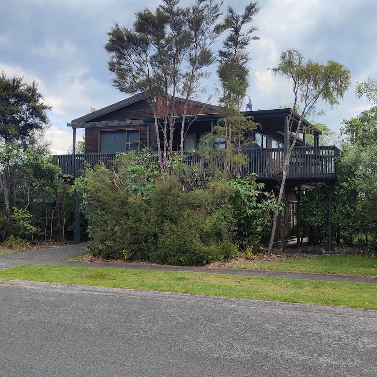 Located in a quiet grove, our home has a modern open plan living area which flows out to a large outdoor living area, featuring a private back yard with all day sun. Within walking distance there is a large lakefront reserve, cafe, tennis courts, kids playground and bush walks to explore. The supermarket is a 15 minute drive, general store 3 minute drive and 2 boat ramps just a minute away. Perfect base for Whakapapa ski field, Tongariro crossing and various mountain biking or walking tracks.