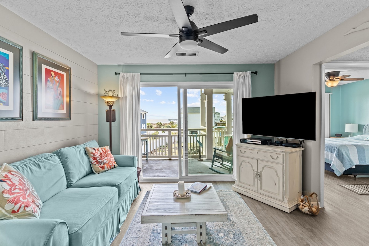 Peach on the Beach is a modern & newly renovated one bedroom condo, with a spacious open living room/kitchen area. This is a corner unit, which provides breathtaking views with access to a large covered oceanfront deck. Just a 2 minute walk to the beach. Perfect location for the sunrise and sunset lovers! Enjoy the ocean sunrise from the deck or beach & directly accross the street at the Fort Fisher Air Force Recreational Center are the best sunsets on the river.