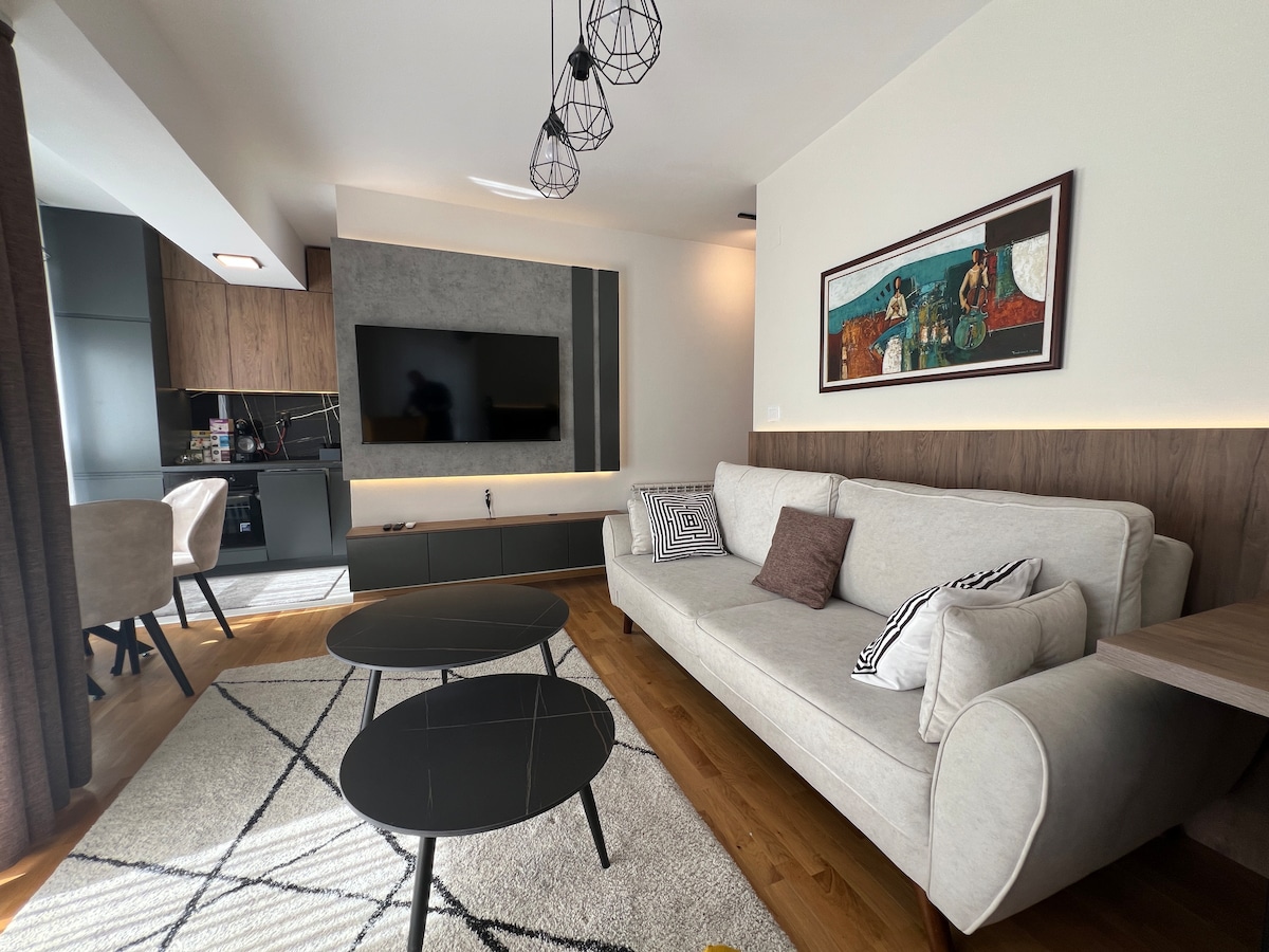 Modern, one-bedroom apartment with balcony, fast Wi-Fi, A/C and free parking. Easy walk to the Main Square, Old Bazaar, malls, cafés and restaurants. Perfect for digital nomads and travellers - stylish, clean & peaceful stay! Sleeps 3 (queen + sofa bed), with full kitchen (oven, stove, dishwasher), bathroom (shower, washing machine, towels) and balcony. ✈️ We offer airport transfers for extra comfort (additional cost). Stay 10+ nights get one-way free, 14+ nights both ways free!