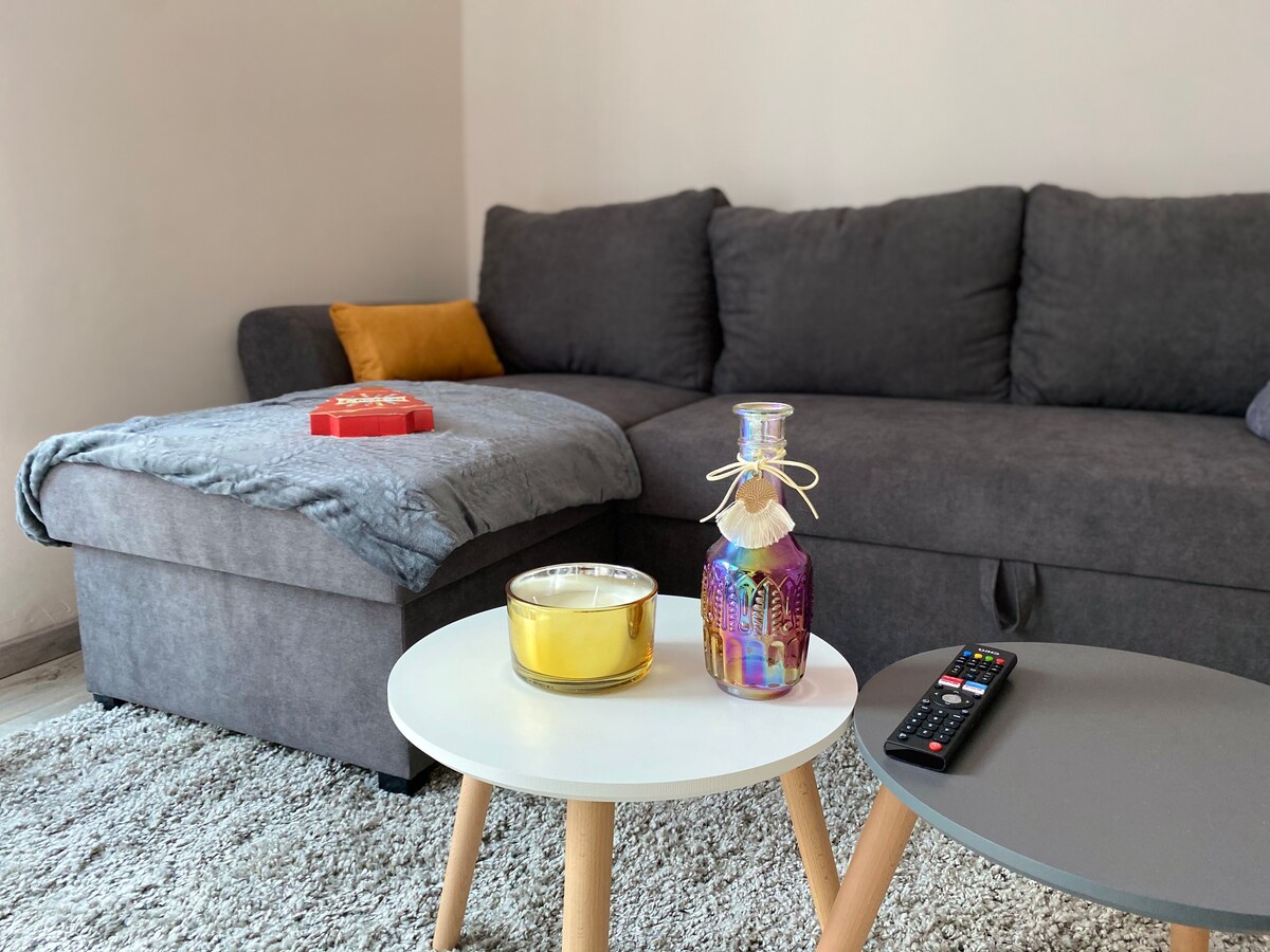 Das 54qm große zentral gelegene Appartement ist gemütlich-rustikal eingerichtet und verfügt über einen großen Südbalkon, zwei Flachbild-TVs (je in Wohn- und Schlafzimmer), eine Schlafcouch, schnelles WLAN und einen Tiefgaragenstellplatz (beides kostenfrei). Die offene Küche ist voll ausgestattet inkl. Mikrowelle, Kaffeemaschine (Tchibo Cafissimo), Kühlschrank u.v.m.. Handtücher, Bettwäsche, Föhn sind vorhanden. Zudem gibt es einen hauseigenen kostenlosen Pool und eine Sauna (1€ je 20 Minuten).