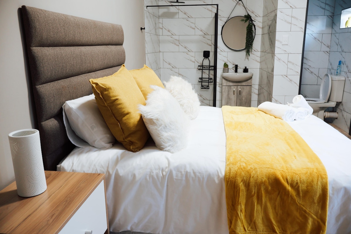 Private luxurious flatlet attached to our home. It is equipped with a queen bed, kitchenette, and air conditioning. The kitchenette has full sets of crockery, cutlery, kettle, toaster, induction cooker, microwave, air fryer and a concealed bar fridge. The bathroom has a huge spa-like shower and a soft close toilet suite. Free wifi and free access to Netflix, Prime Video and Showmax. Guests can login to their own DSTV account.