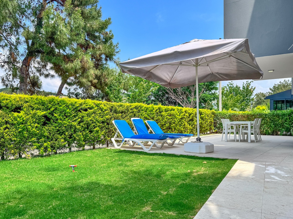 Step into a calmer side of Kusadasi at our bright garden-level apartment in Lavender Residence, ideal for families and relaxed stays of up to 6 guests. With your own private garden and terrace, it offers an easy indoor-outdoor holiday rhythm, while the residence adds extra comfort with indoor and outdoor pools, a gym, and free on-site parking. Just 5 minutes from Long Beach, it’s a welcoming base for slower mornings, poolside afternoons, and comfortable evenings back at home.
