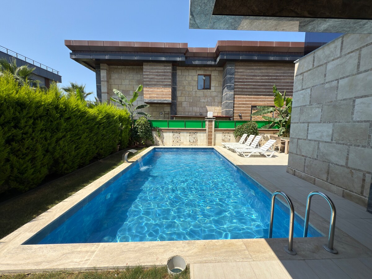 Kuşadası’ında TURİZM BAKANLIĞINA KAYITLI,Yanyana,müstakil,özel havuzlu 4 adet villa,denize 1500m.300 m2.Bahçe içerisinde,etrafı çevrili,mahremiyet alanlı,özel açık otopark,barbekü,şezlong, bahçe masa sandalye takımı,şömine,4 yatak odası(herbirinde çift kişilik yatak)1 salon,yeni eşyalı,tüm beyaz eşya ve mobilyalar,ankastre mutfak,tüm mutfak ekipmanları(çaycı,tabak,çatal bıçak takımları,tencere tk.vs salon ve odalarda klima,24 saat sıcak su,saç kurutma mak.havlu,ütü,yürüyüş mesafesinde avm/market