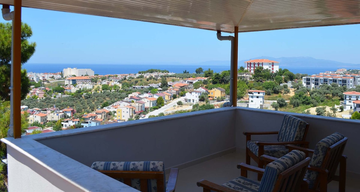 Denize yakın Mehtap sitesinde bulunan bu sakin yazlıkta sade ve rahat bir konaklamanın tadını çıkarın. Önü açık balkonunuzda ya da kullanımının size ait olduğu geniş bahçenizde sevdiklerinizle huzurla yemeğinizi yiyebilrsiniz. Deniz ve dağ manzaralı terasınızda gece gökyüzünü izleyebilirsiniz. Denize yürüyerek 10 dakikada ulaşmanız da mümkün. Bu ilan binanın üst üç katını kapsayan ve zemin kattan ayrı bir bölüm olan evimiz içindir.