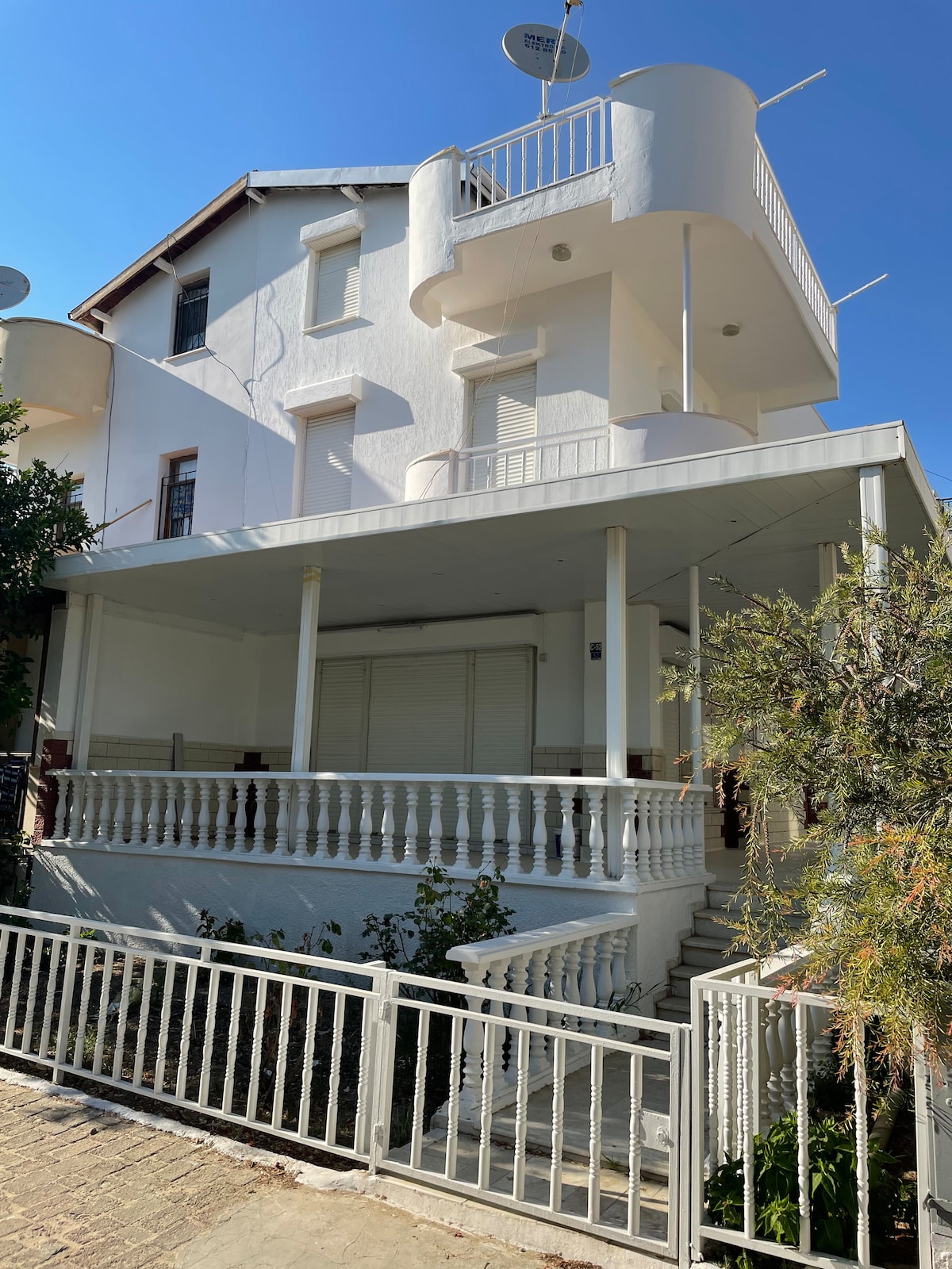 Kuşadası Karaova’da bulunan 3 katlı müstakil villamız, denize 300m. mesafede olup sakin ve konforlu bir tatil için idealdir. 4.97 puanlı yüksek misafir memnuniyeti ile güvenle konaklayabilirsiniz. Site içerisinde yer alan evimiz, kartlı giriş sistemi ile özel plaja erişim sağlayabilirsiniz. Plajda site sakinlerine ait şezlonglar bulunmaktadır. • 3 katlı geniş yaşam alanı • 7 kişilik konaklama kapasitesi • Özel bahçe ve veranda • Tam donanımlı mutfak Kuşadası merkez araç ile 15 dk mesafededir.