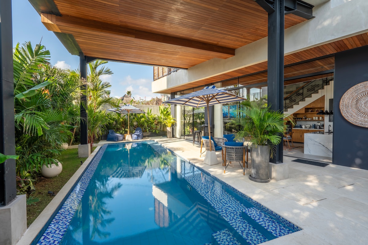 Escape to our Brand New 1 BR villa with private pool in superb location in the heart of Canggu, This is the perfect villa for couples or solo travelers who loves to explore famous spot in Canggu. Just 3-5 walk to great Restaurant, Shop, Gym, CoWorking, Pilates, cafes & Bars. It is just few minutes from famous beaches like Nelayan, Batu Bolong, Canggu Beach, This villa features a luxurious king bed, ensuite bathroom, kitchen, pool, living room, and open living spaces to relax by the private pool