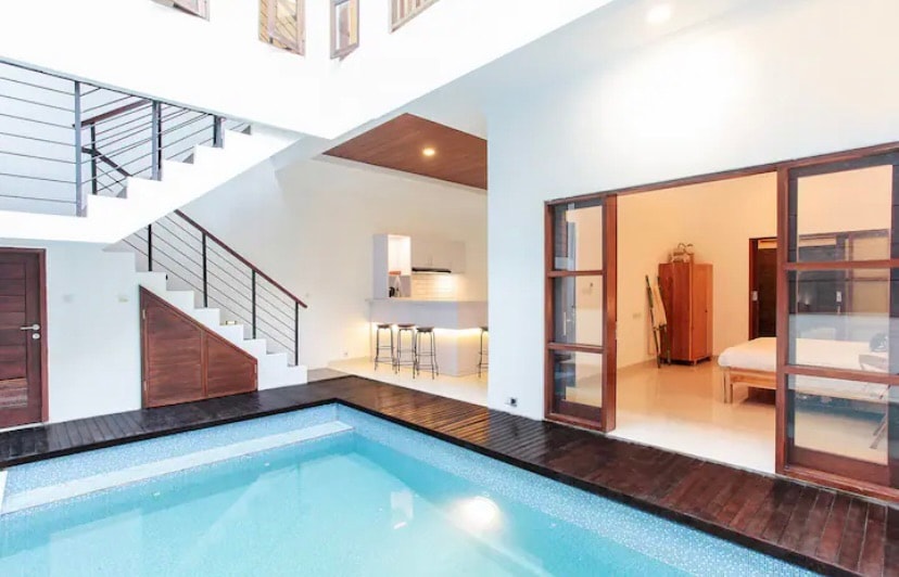 Build in 2022, Villa Balibaba consists out of 5 separate, private villas. Each 1-bedroom villa has its own access, kitchen, living room, bathroom and garden. Villa Balibaba also has a 40 sqm shared pool, with sunbath beds and a great lounge area and a completely private parking. Within 5 minutes you are at the famous Double-Six beach and shops, restaurants, bars, grocery stores, Bintang Supermarket are all within walking distance.