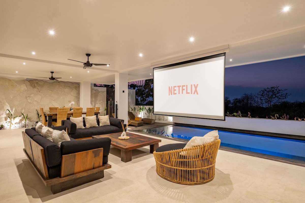 Welcome to White Sun Villa – your private paradise where elegance meets comfort. Swim in the turquoise pool glowing at night. Don’t miss the rooftop terrace – the perfect spot to sunbathe, sip wine, or simply enjoy the magic of the evening sky. In the evenings, enjoy our professional home cinema with high-resolution – your private movie night under the stars. All amenities – the pool, rooftop, and cinema – are absolutely private and hidden from prying eyes, so you can truly unwind.