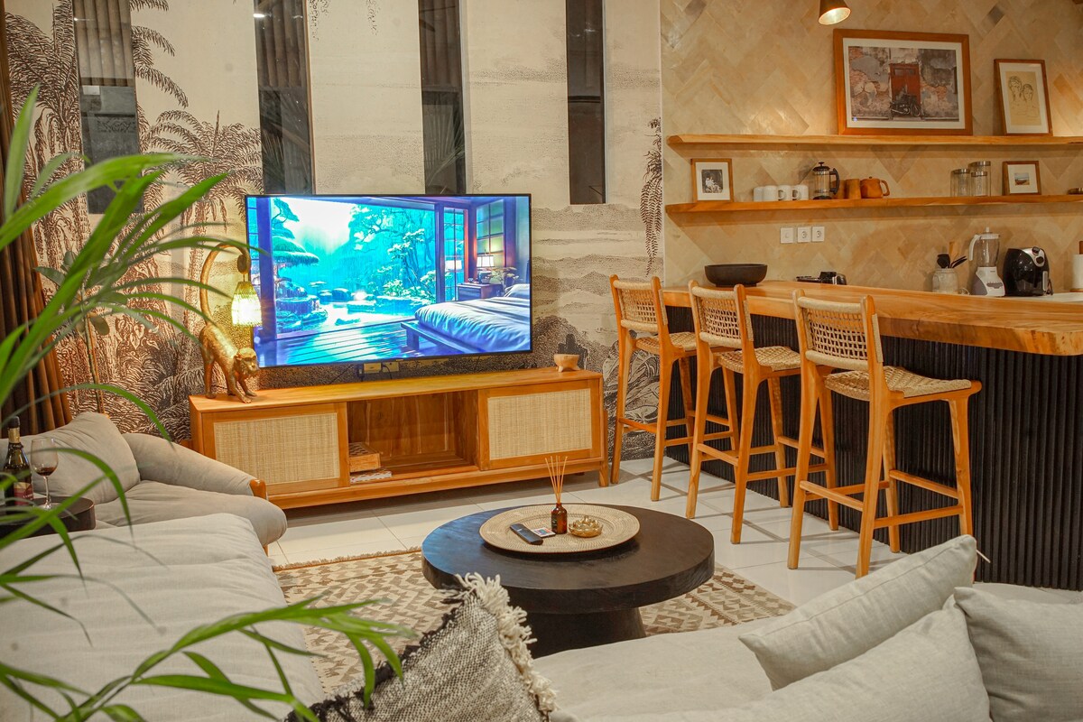Brand New Villa in a Prime Umalas Location • 3 air-conditioned bedrooms with breathtaking jungle views • 3.5 modern bathrooms with premium amenities, slippers & hairdryers • Huge private pool surrounded by tropical greenery • Elegant open-plan living, dining & kitchen area • 300 Mbps Wi-Fi — ideal for work & streaming • PS5, Netflix on request • Baby cot & high chair on request • Daily cleaning with fresh towels & linens • Concierge service: scooter rentals, spa bookings, private drivers & more
