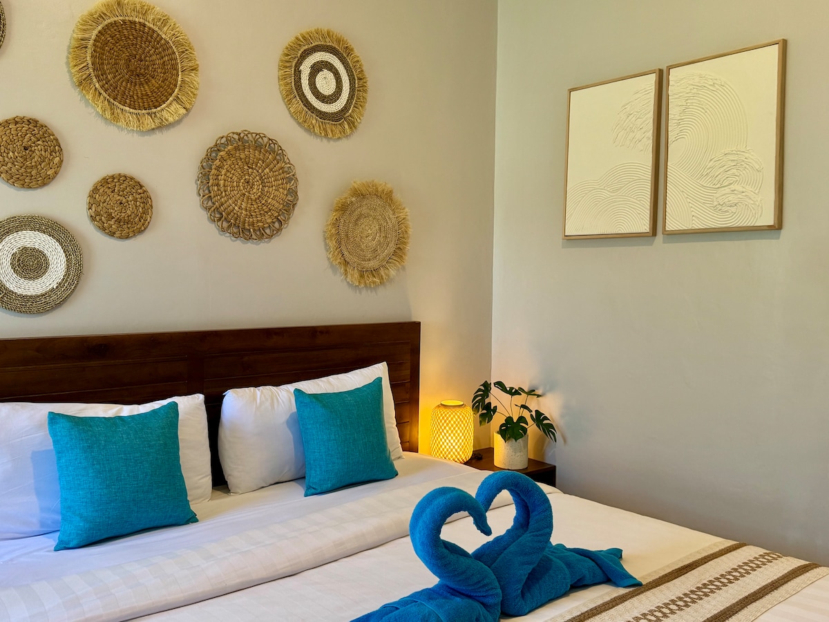 It's not just a place to stay, its where hospitality, warmth , and nature blend together in comfort and kindness under the shade of mango tress. Forget your worries in this spacious and serene tropical space. This twin share room is nested on our beautiful resort which has 3 share pools, gym, amazing cafe and incredible staff. Making your stay as peaceful and possible. Perfect for a couple, friends, kids, solo traveler or digital nomad.
