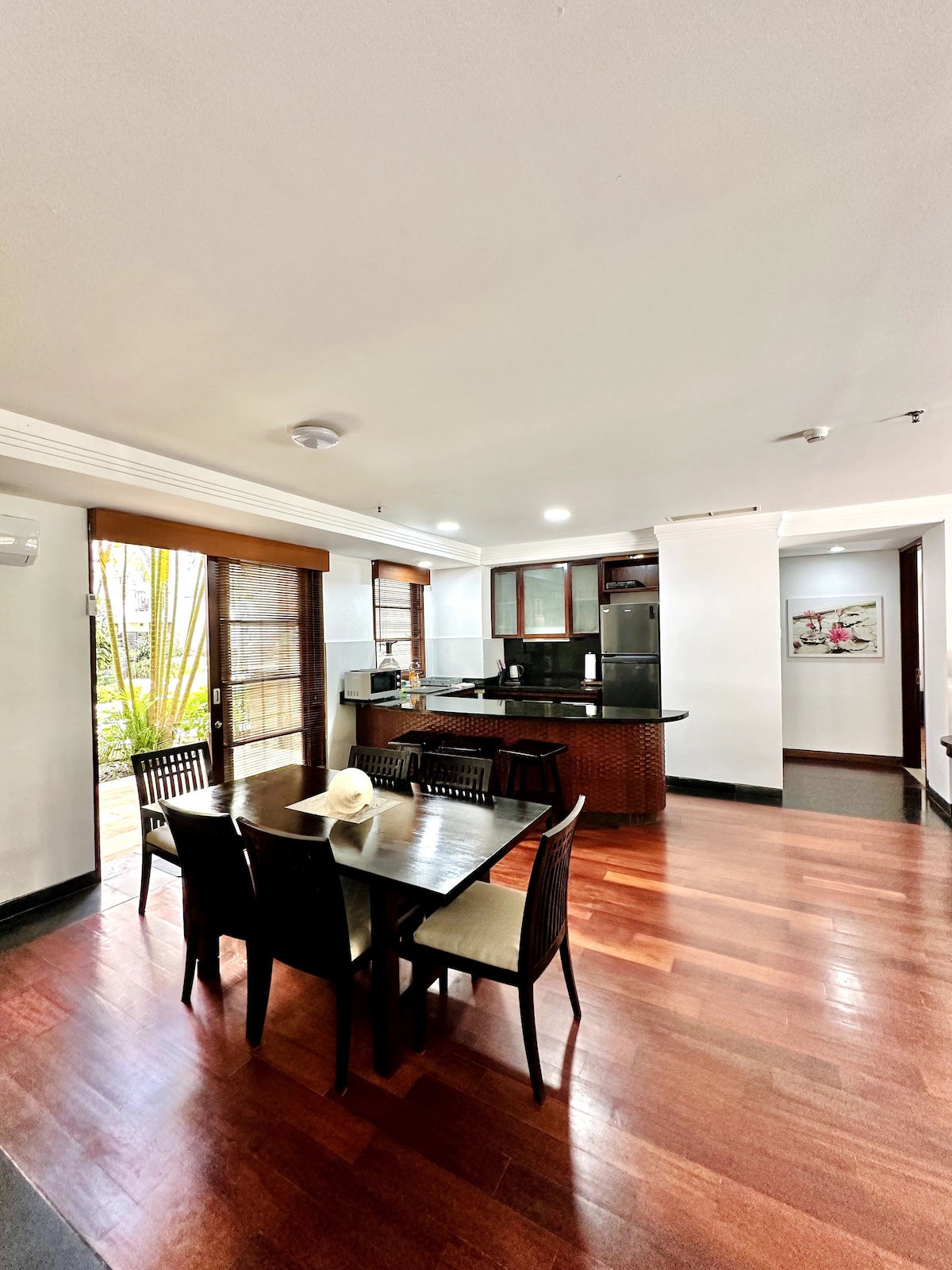 Our Condominium inside and maintain by Novotel Hotel Resort at Bali Nusa Dua ITDC Complex. This residence is 150 square meter at first floor with 2 bed rooms and 2 bathrooms. The master bed room connected to spacious private bathroom and has a terrace facing to the main garden. We provide extra bed and sofa bed for additional family guest. Hotel support Covid-19 health protocol for all guest and cleaning all rooms with disinfectant before guests Check in and after guests Check out.