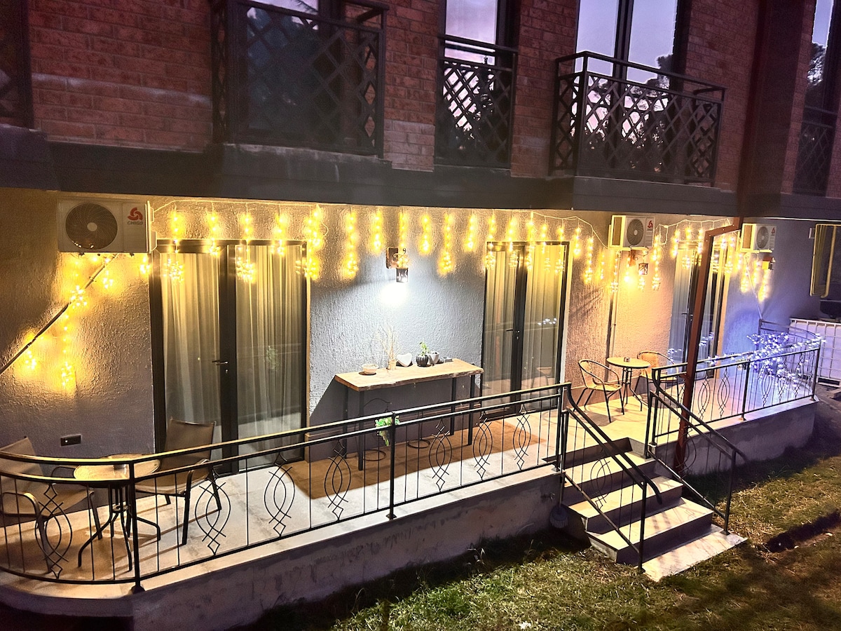 Enjoy a stylish stay from very close to the city center(4 km) NEW apartment on the 1st floor with terrace and green beautiful garden view. The guest will find fully furnished, well illuminated apartments, with all amenities guest might need for a short stay or a long sojourn! The space is equipped with fridge, kettle, handmade (by me)) nature wooden accessories and all necessary amenities for comfortable stay) FREE Airport transfer from Kutaisi Airport can be done if you book 7 or more days!
