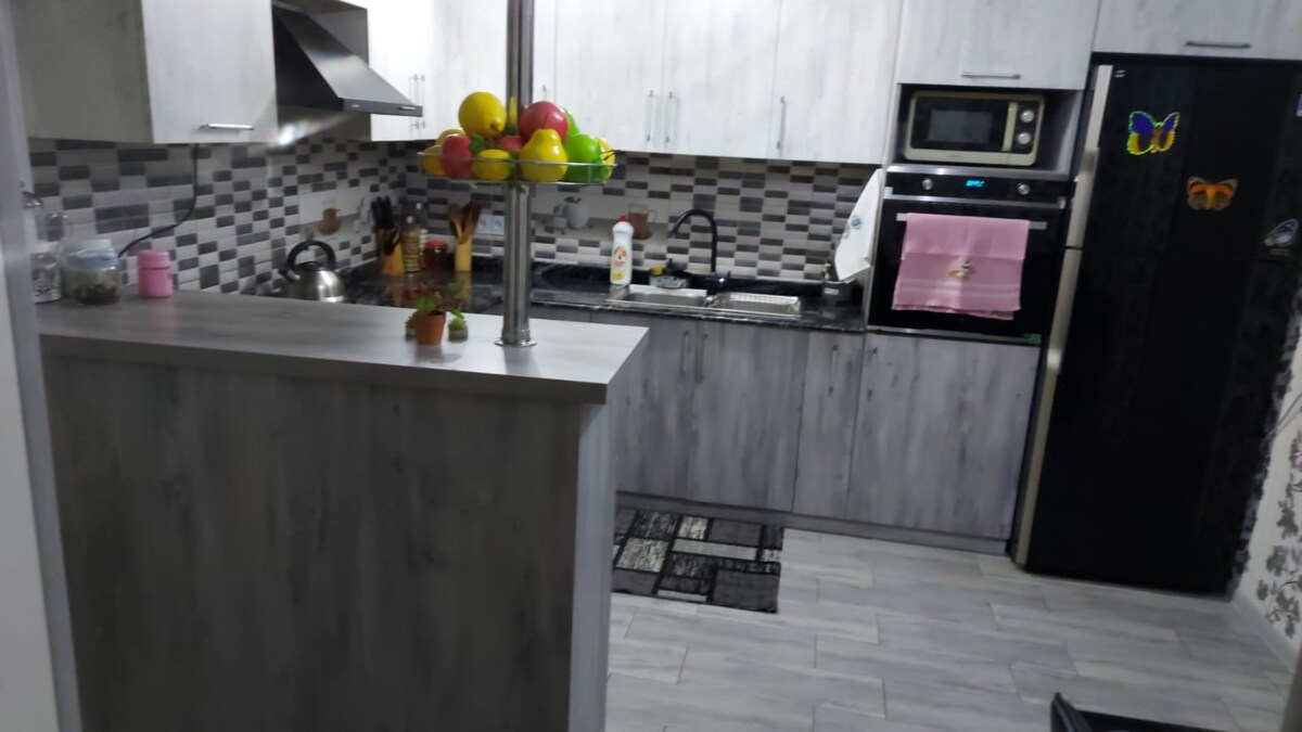 Welcome to our elegant three-story home with a large private garden and on-site parking. The property includes two private apartments: one apartment is located on the first floor, and the second apartment is on the second floor on the right side, each offering two bedrooms, a kitchen, and a bathroom. The third floor features a spacious living room . welcoming entrance hall, all within the same private property designed for comfort and family stays.