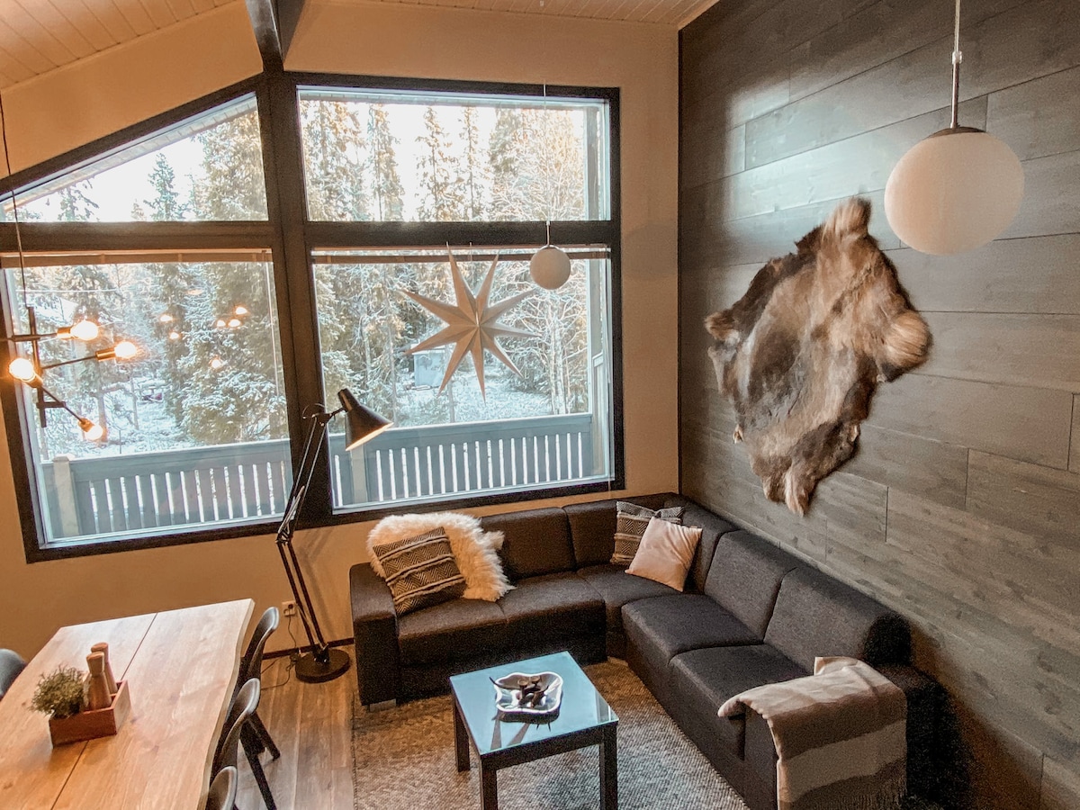 大型Ruka度假木屋+ 2张滑雪通行证,滑雪巴士300米