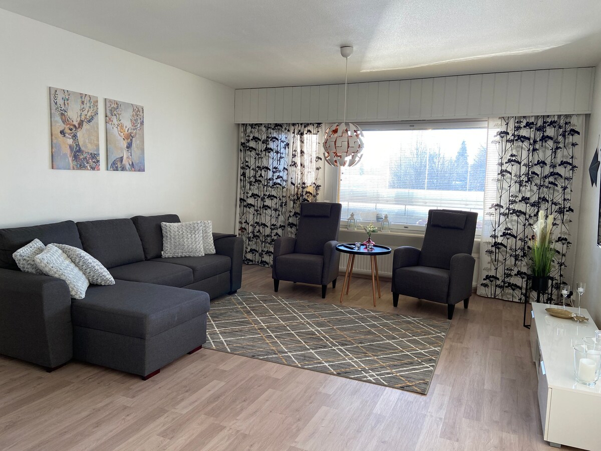 位于库萨莫市中心的舒适两室公寓,带桑拿房