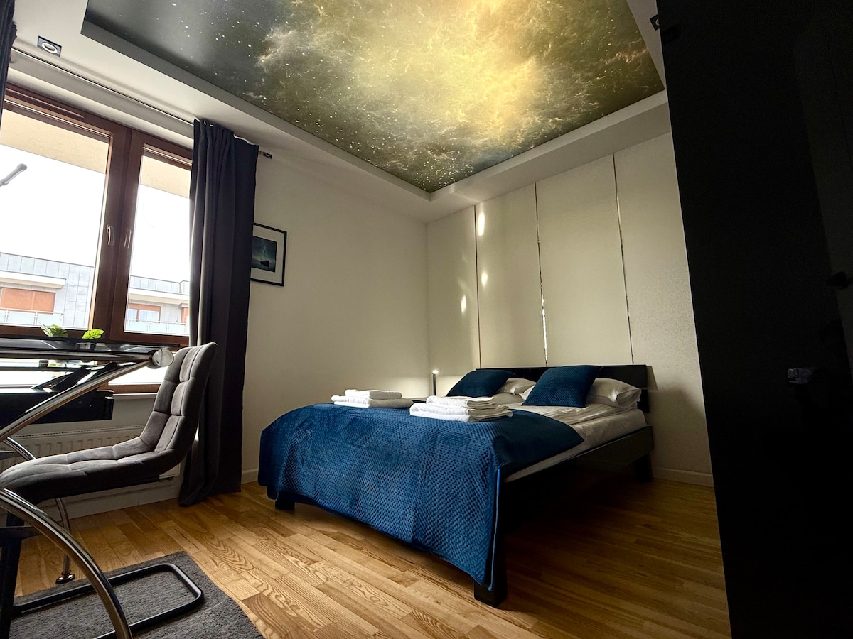 Zapraszamy do nowoczesnego, luksusowo wykończonego apartamentu położonego w samym centrum Torunia, zaledwie kilka minut spacerem od urokliwego Starego Miasta. Wnętrze apartamentu zostało zaprojektowane z dbałością o każdy detal – eleganckie meble, wysokiej klasy materiały wykończeniowe oraz stylowe dodatki tworzą wyjątkową atmosferę komfortu i prestiżu. Apartament oferuje przestrzeń dla 2 lub 4 osób – do dyspozycji Gości jest sypialnia z wygodnym łóżkiem oraz rozkładana sofa w części dziennej.