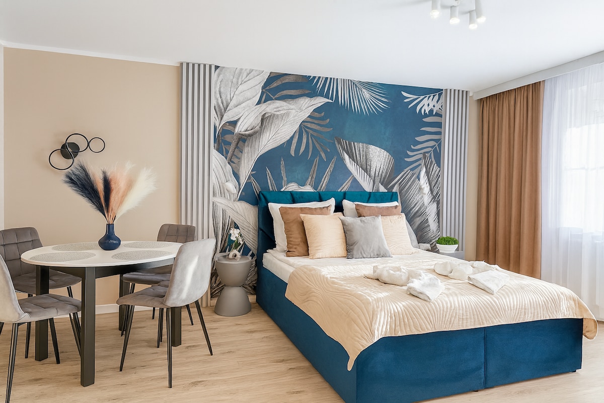 Zapraszamy do eleganckiego apartamentu Superior w centrum Bydgoszcz. Komfortowe 40 m² obejmuje sypialnię z dużym łóżkiem, salon z rozkładaną sofą oraz w pełni wyposażony aneks kuchenny z ekspresem do kawy i zmywarką. Klimatyzacja, prywatna łazienka, balkon/taras, telewizor z płaskim ekranem i bezpłatne Wi-Fi zapewniają wygodny pobyt zarówno turystyczny, jak i biznesowy.