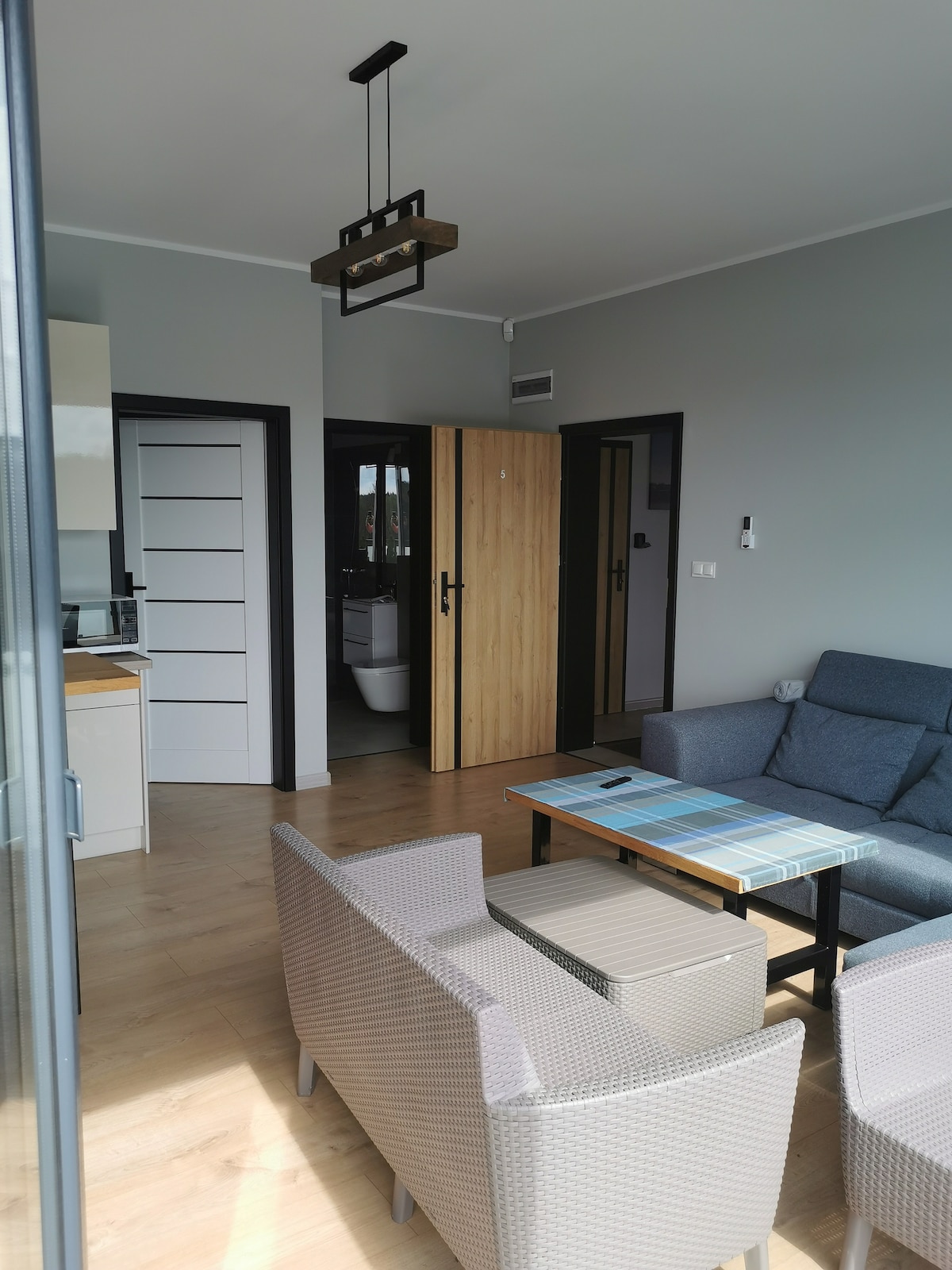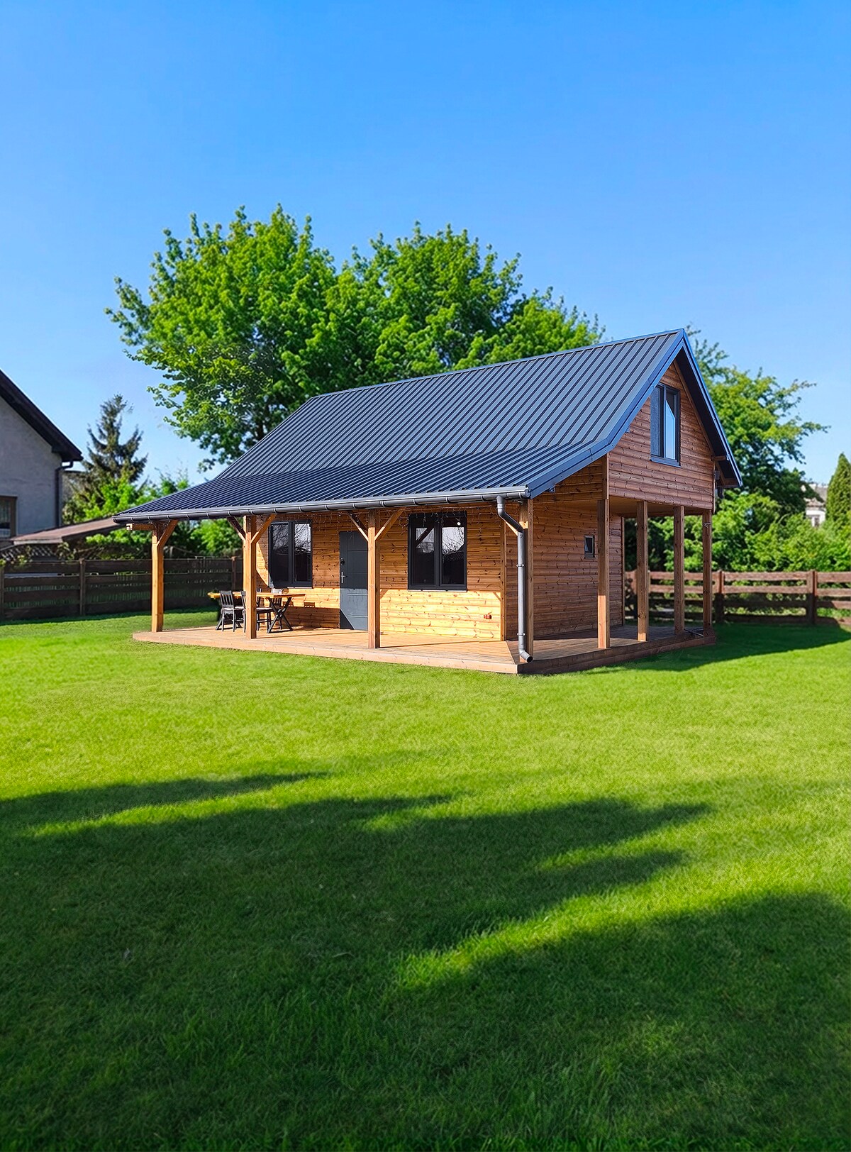 Ta nowoczesna interpretacja tradycyjnej stodoły łączy w sobie rustykalny urok z funkcjonalnym designem, oferująca przestronną, przytulną przestrzeń. Apartament obejmuje powierzchnię 100m2 Taras z widokiem na zachód słońca z wyjściem na nowoczesny ogród Do dyspozycji klienta jest sauna, basen odkryty oraz grill, które znajdują się na ogrodzie Idealny na spacery oraz przejażdżki rowerami las, który jest oddalony o 1 km od domku Jest to Idealne miejsce na odpoczynek i relaks.