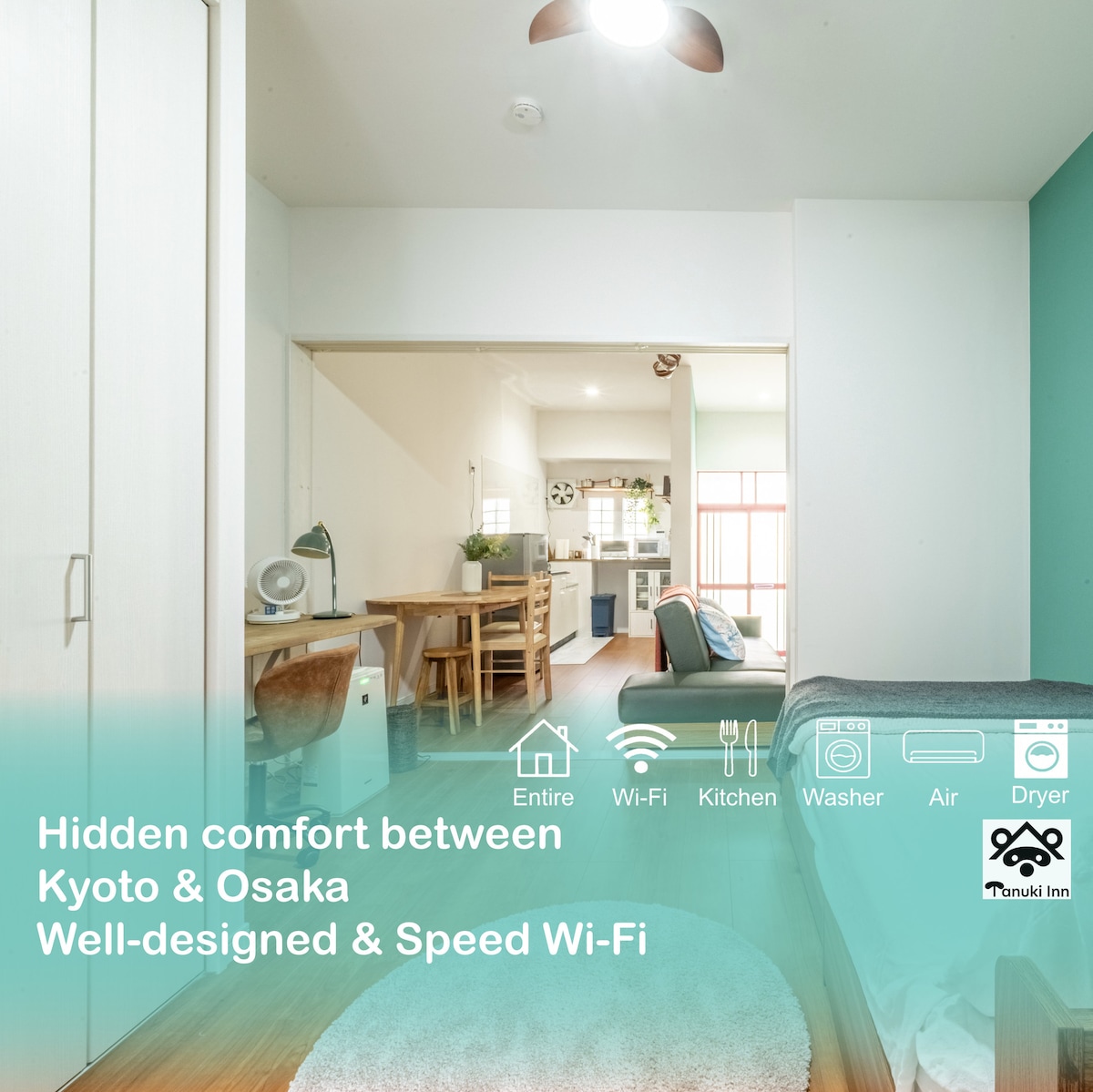 Welcome to Tanuki Inn Hanare – a cozy 33㎡ terrace house, just 4 minutes from Neyagawashi Station. Fully renovated with a raised ceiling, perfect for solo travelers or couples. Washer-dryer, Mirable shower head, and basic amenities included. Kyoto and Osaka are about 40 minutes away. 50% off for long-term stays. If Tanuki Inn is also available, we can host up to 8 guests nearby. Enjoy a peaceful stay in a convenient location!