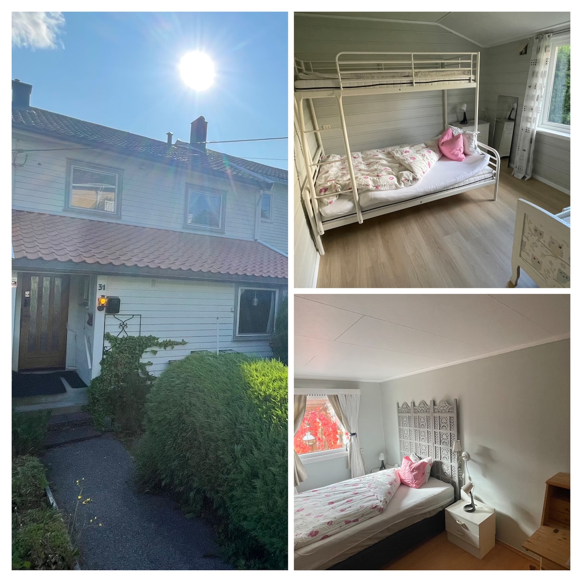 På dette stedet kan familien din bo i nærheten av alt, beliggenheten er sentral. Huset er innholdsrikt og sjarmerende. Det er kort avstand til sentrum, badestrender, dyreparken og masse lekeplasser i området. Samt dagligvare og gode alternativer på take-away. Rett ut fra hagen er det fotballbane og volleyballbane og lekeplass som kan benyttes utenom skoletid. Håndklær er inkludert, vaskes kvelden før avreise. Sengetøy koster NOK 100 ekstra per person og skal tas av, men ikke vaskes.