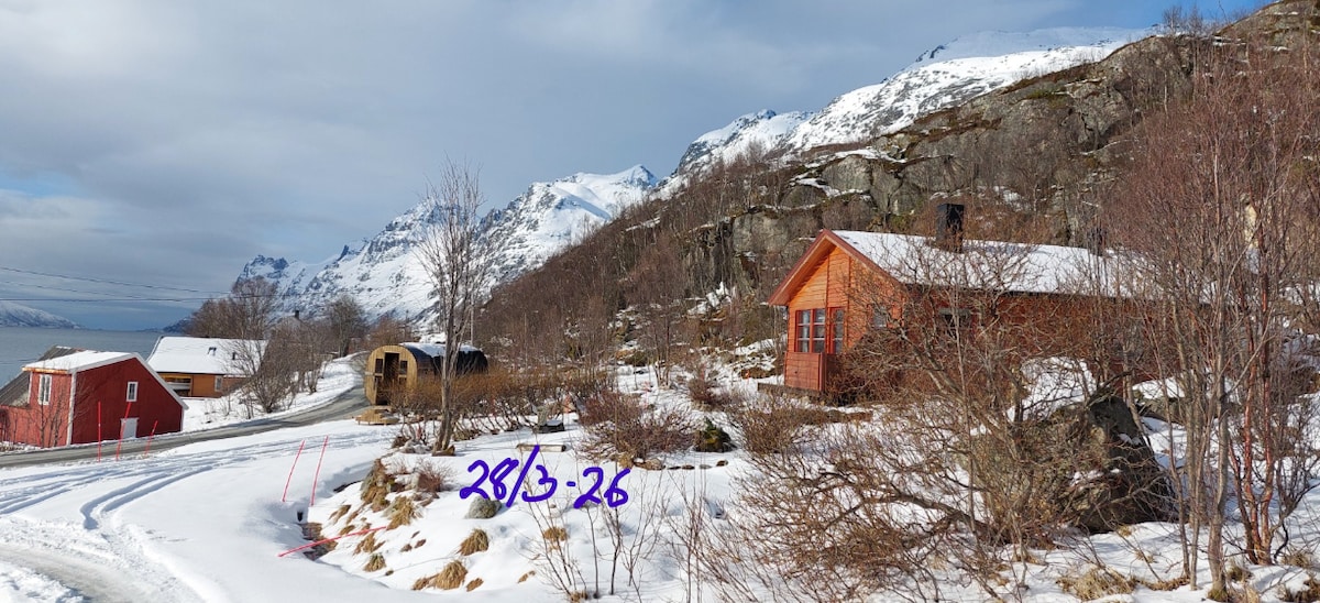 Campingvogn med nydelig tilbygg Her kan du virkelig slappe av og nyte livet. Anbefaler bil da det er ca 45 min kjøring fra tromsø sentrum og 20 min kjøring til nærmeste butikk Nyt havet og finn roen på dette unike stedet med god utsikt over havet Nordlys kan nytes fra sengen og ute om været tillater det Bålplass ute med fantastisk utsikt Inni vognen er det toalett , kjøleskap , spisested , vannkoker og mulihet for enkell matlaging Fantastisk turterreng