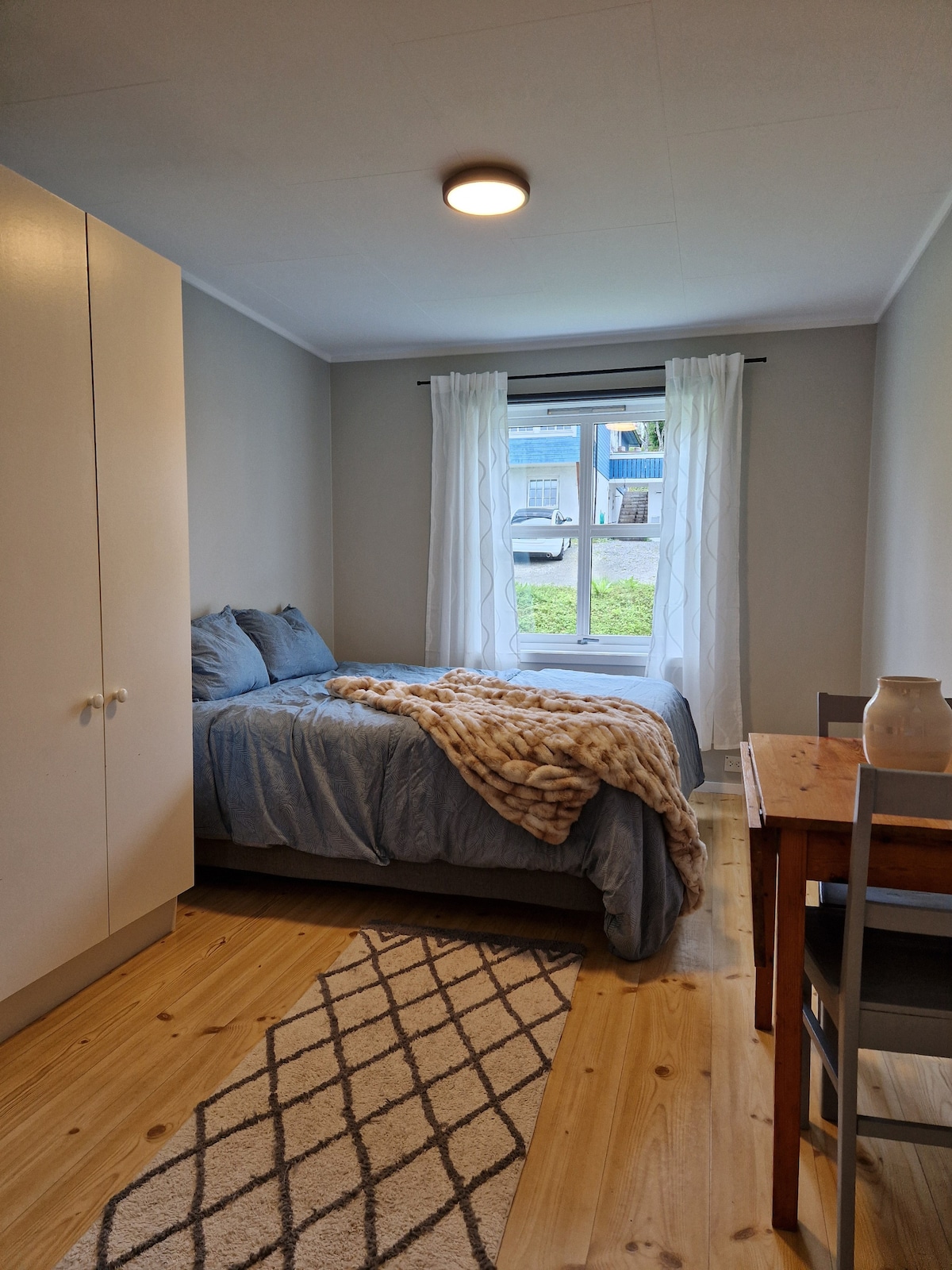 All inclusive. towel etc. Fresh, cold drinking water from the tap. 1 min to bus stop. 5 min bus to the city centre. 15 minute walk to the city centre. By agreement and fee of 300 NOK possibility to use sauna with snow bath. One double bed 120 meters wide and the other 140. For bookings after 24.11.25. A free bacalao meal or one fish cake meal for free, if desired, for stays over three days.