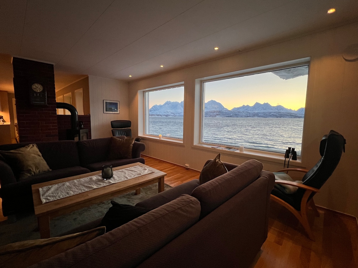 Stort fullt møblert hus ved sjøen med egen strandlinje. Tilgang til vedfyrt badstud mot tillegg i prisen NOK 300,- (1 sekk ved) samt jacuzzi mot tillegg NOK 300,-pr dag. 4 store soverom med dobbelsenger, plass til 8 personer. Mulighet til barneseng ved forespørsel. 15 min med bil inn til Tromsø sentrum. Nært til alpinannlegg, skiløyper og butikk. Fantastisk uteområde med midnattsol på sommeren og nordlys på vinteren. Plass til flere biler i innkjørselen. Godt internett. Kan ta 3 personer til