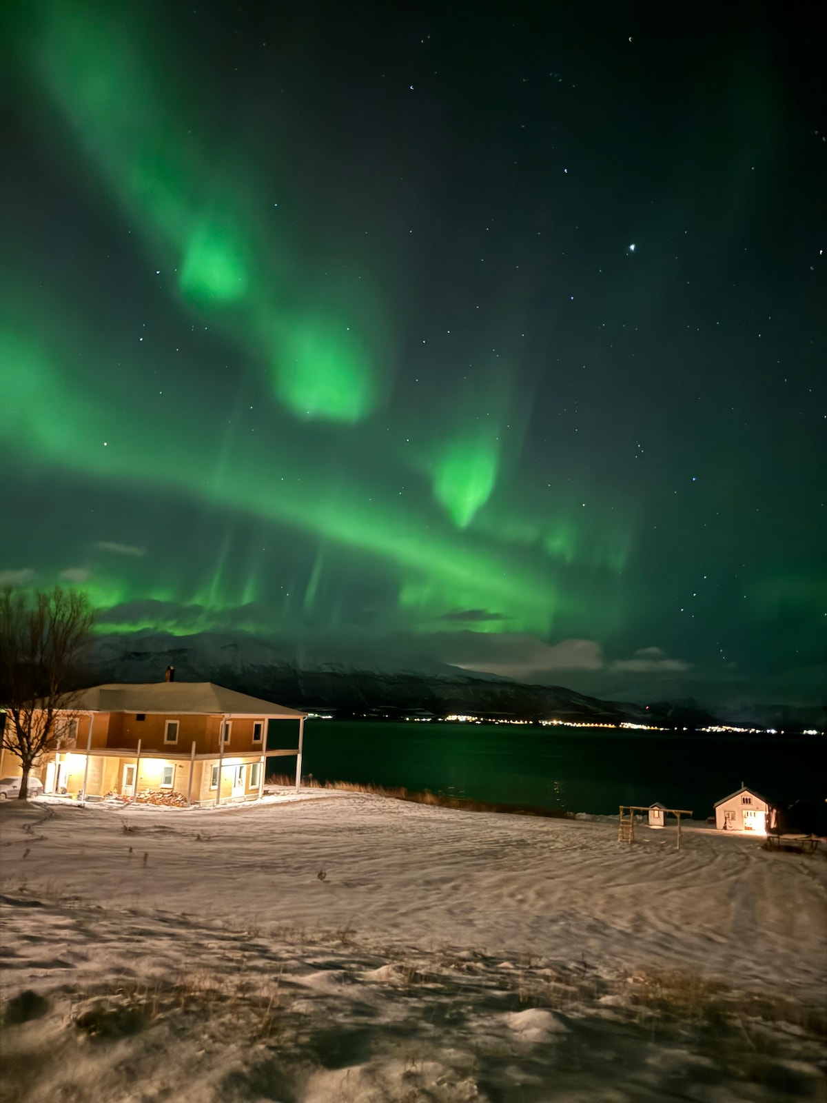 Ladd batteriene på dette unike og rolige overnattingsstedet. 25 minutters kjøretur fra Tromsø, en liten bygd som heter Skulsfjord finner du dette koselige lille huset helt ved sjøen. Fantastisk utsikt og ett rolig området der man kan nyte idylliske fjell og naturomgivelser. Nordlys sesongen er fra September til April. Er det klarvær vil det danse på himmelen direkte fra stuevinduet. Mange unike turmål til fots og ved båt som verten kan informere om ved behov og har kart tilgjengelig i huset.