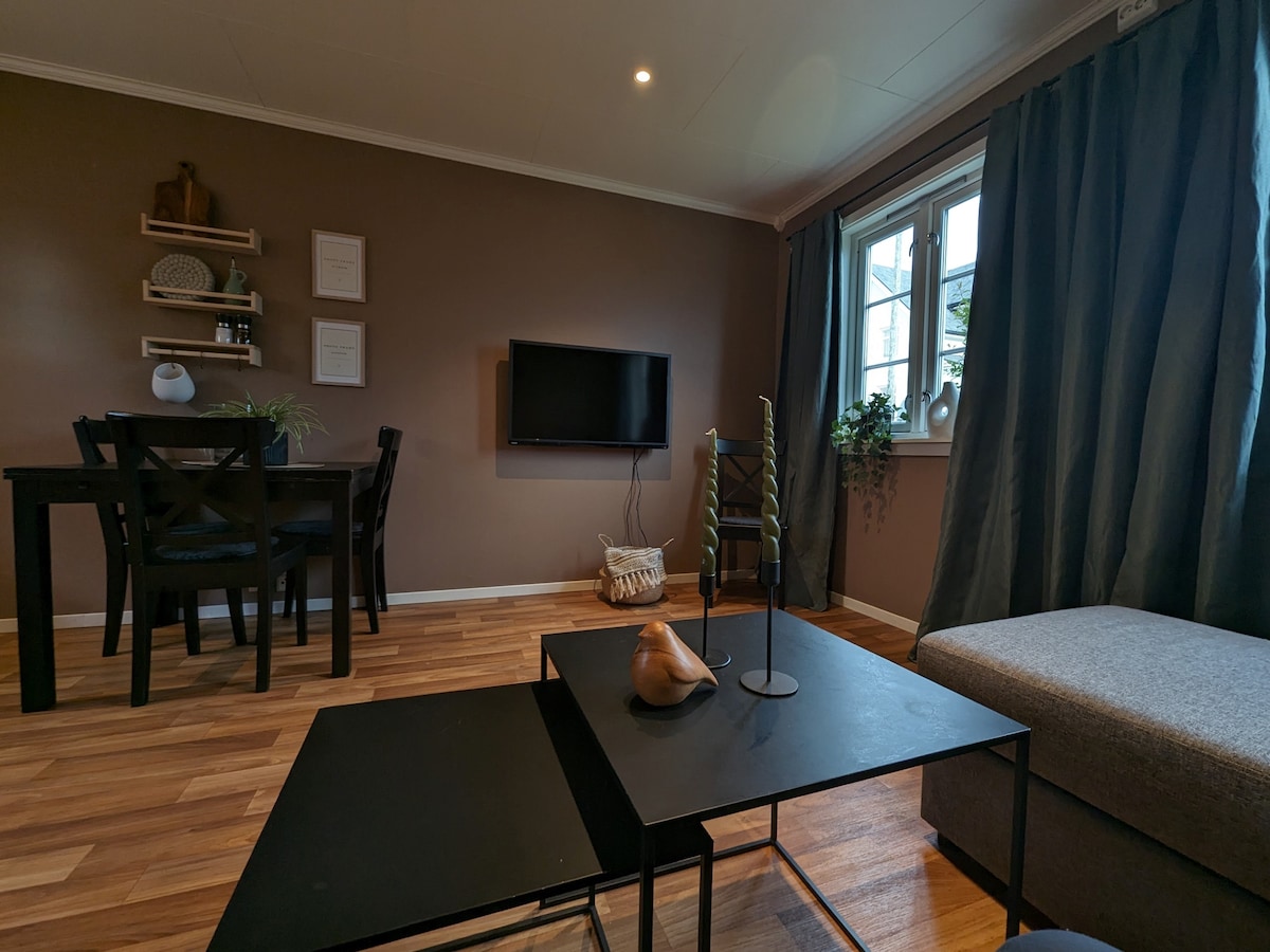 Cosy studio appartment with private bathroom, located in a small cottage in the backyard of our house. It has a fully equipped kitchen and bathroom, and a nice little terrace by the entrance for enjoying a cup of coffee in the morning. You may find great hiking trips close by, for instance the sherpa steps if you're into getting you're pulse going. Within short distance of grocery store, bus stop and some of Tromsø's main attractions like Ishavskatedralen, and Fjellheisen (cable car).