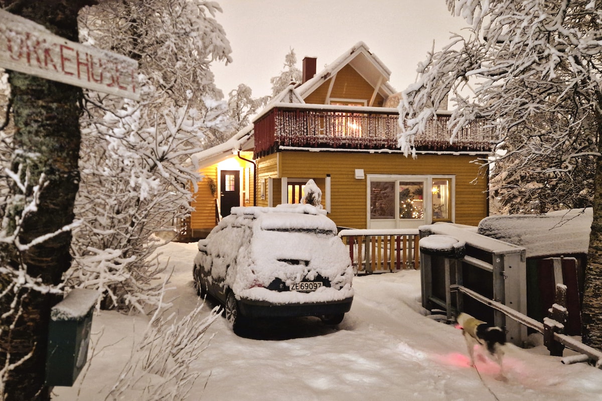 Kun 25 min. (med bil) fra sentrum, flott natur, fin utsikt og muligheter for å se Aurora borealis. Koselig loft med 2 soverom, kjøkken, liten stue og bad. Egen inngang. Det er dobbelseng (150x200) på begge rom. Leiligheten er godt utstyrt med det man trenger for et ferieopphold.