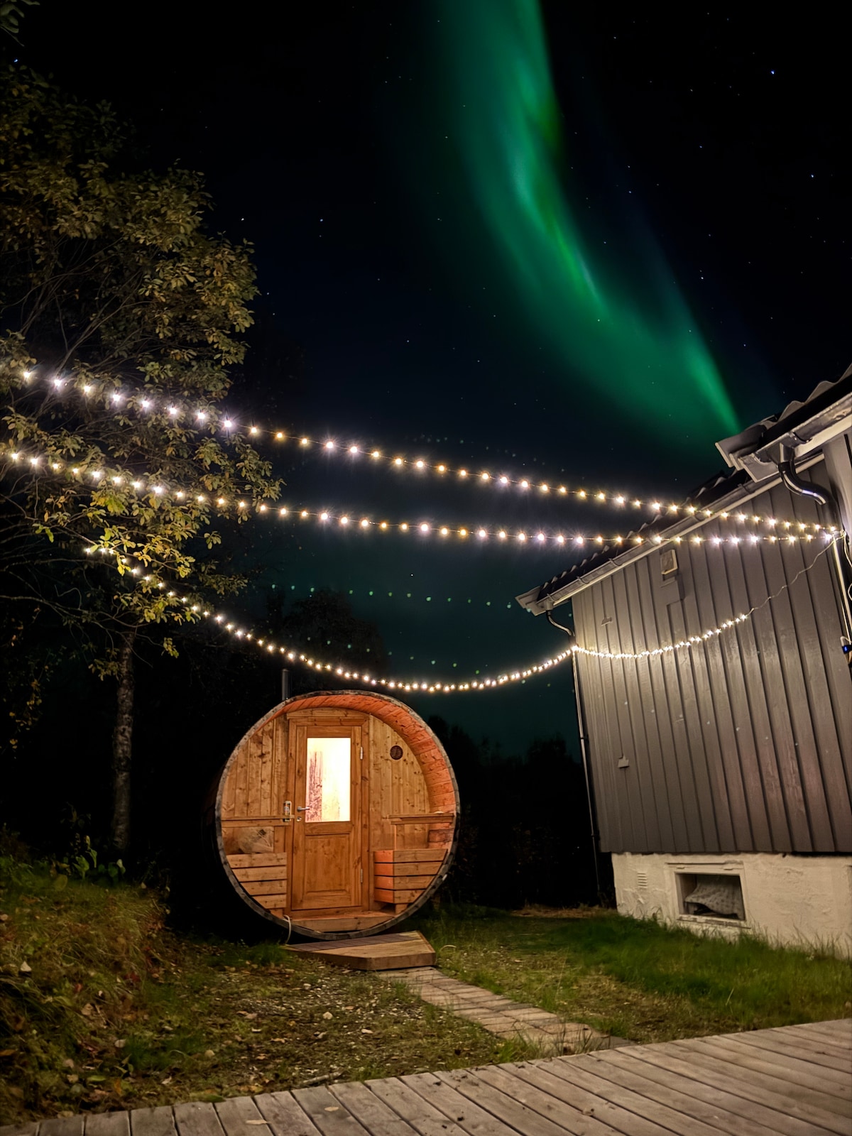 This tiny guesthouse has the most beautiful view directly from your kitchen and sleeping room window. Since there's no street lights around, it's the perfect place to watch the Aurora and enjoy a relaxing private getaway in the Arctic. We live next door with our 6-year old son and cat. We are at work from 8:00 are at home from about 4:30pm and on weekends. On-site services: EV charging 400kr/ Private transfer 500kr/Hot tub 1200kr or 100€ for 2 days/Sauna 500kr or 40EUR per use (cash only)