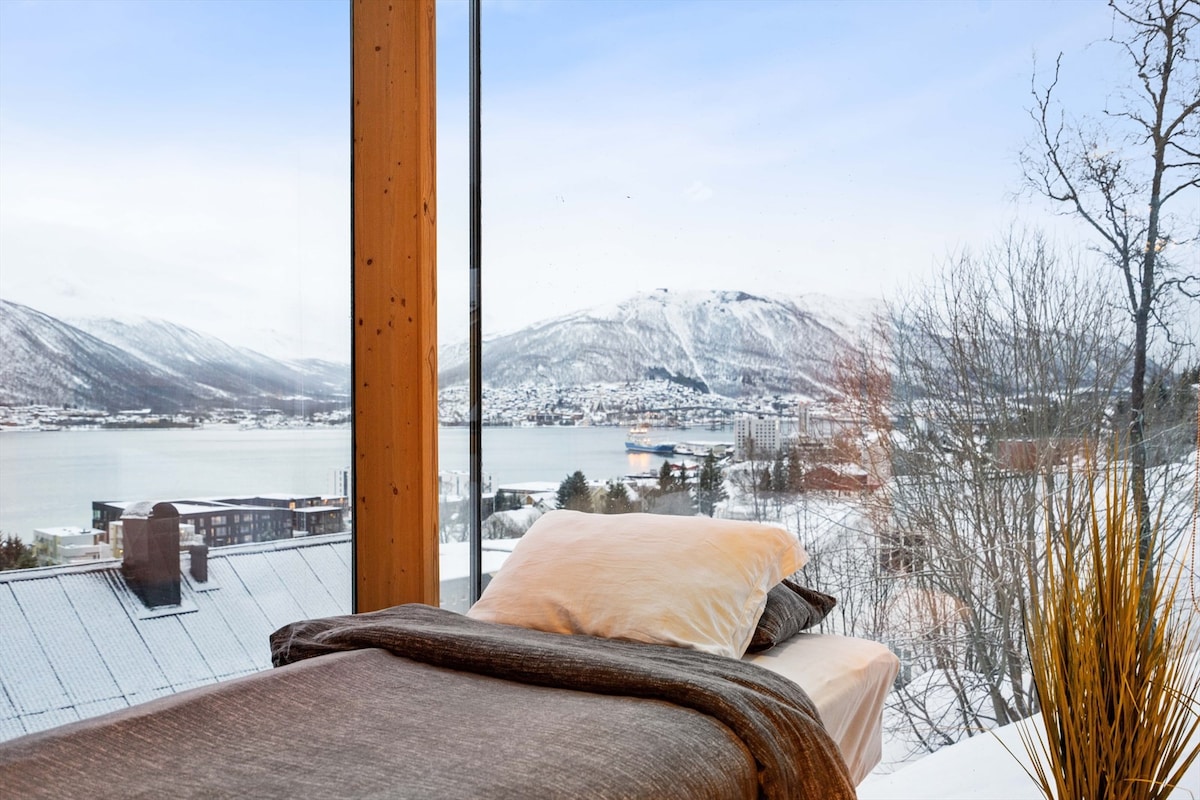 3 floor house with huge windows hovering above the city. ( has Turkish steam room spa) The roof top terrace gives you 360 view to all surrounding mountains. Moreover, perfect condition to admire the Northern lights at night. House is located 1,2 km away from centrum of Tromsø, buss from to house (5min to centrum). has 2 bedrooms in 1 floor (4ppl) and large couch (sleeping) in living room 2nd floor. 3rd floor is washing machine and dryer with entrance to Terrace. Unique wooden style, 70m2