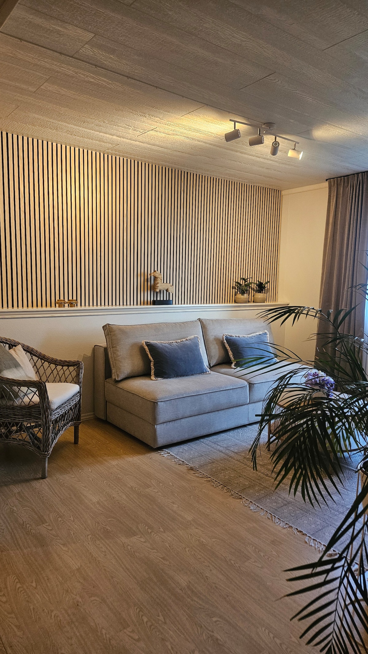 Welcome to our charming apartment on Kvaløya with a fantastic view of the city. Close to a lit ski trail and beautiful hiking paths all year round, the apartment provides the opportunity to experience spectacular Northern Lights or the midnight sun. Perfect for those seeking a warm and spacious home near both nature and the city center. Ample storage space for hiking and ski equipment, plus free parking – a luxury rarely found in the city center.