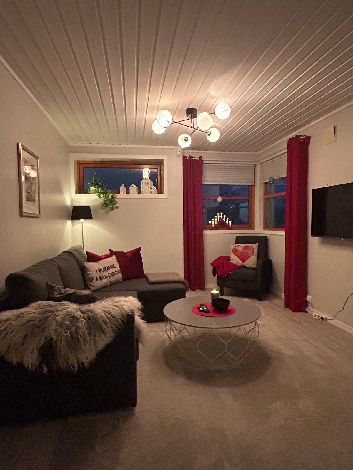 Se nordlyset danse over himmelen fra egen markterrasse! Og treffe reinsdyr i nabolaget! Mørketiden fra slutten av november ❤️ Vi bor like ved Tromsø sentrum, med gode bussforbindelser noen minutter unna. Er kun fem minutter til flyplass. Perfekt utgangspunkt til å oppleve alt Tromsø har å tilby Leiligheten ligger like ved turløype, sommerstid er det mange flotte turstier i området, og på vinteren er det opplyst turløype som kan brukes både med ski og til fots En gratis parkeringsplass.