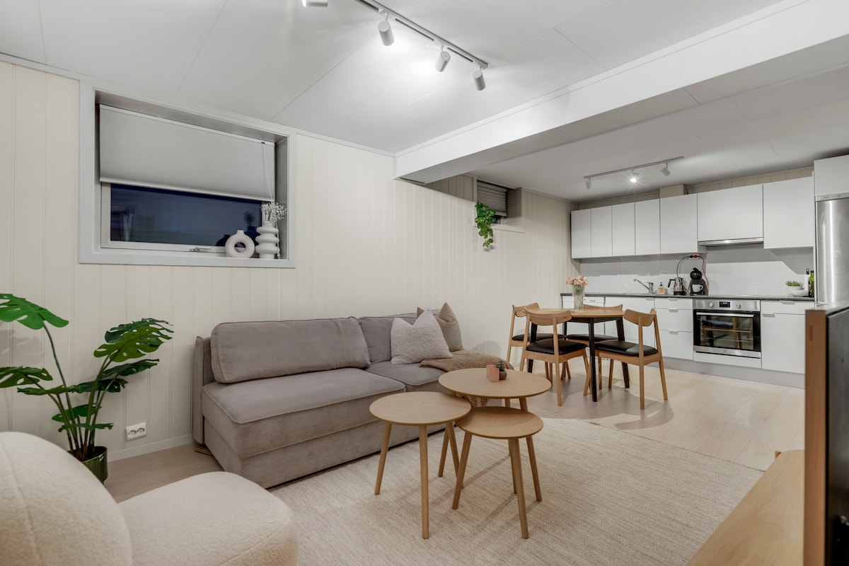 Imagine waking up in a cozy Arctic apartment, soft light reflecting off snowy peaks and quiet fjords. You make coffee, step outside, and fresh mountain air fills your lungs. Trails begin at your doorstep — for skiing, hiking or simply peace. As night falls, the northern lights may dance above, painting the sky in green and purple. And if you’re lucky, reindeer might wander through the garden. Just 15 min from Tromsø and 5 min from the airport — this is Arctic living at its most magical.