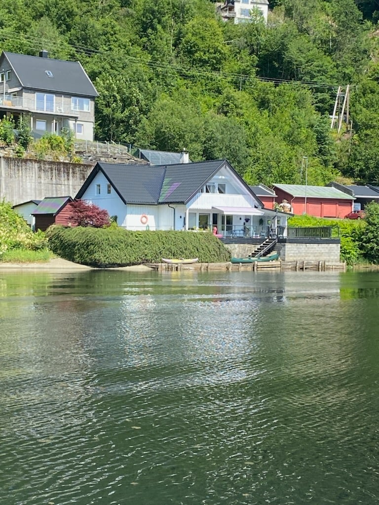 Charming home with your own private beach and garden. The house is by it self right next to the fjord, large windows. Excellent fishing possibilities from our long shoreline. (Boat not needed) Spectacular views gives you the feeling of nature up close. The nearest city is Bergen one hour away, 40 min to the glacier, only 6 km to the nearest town with restaurants and shops, free access to lokal gym. Wonderful location, private and yet central, close to different activities and adventures .
