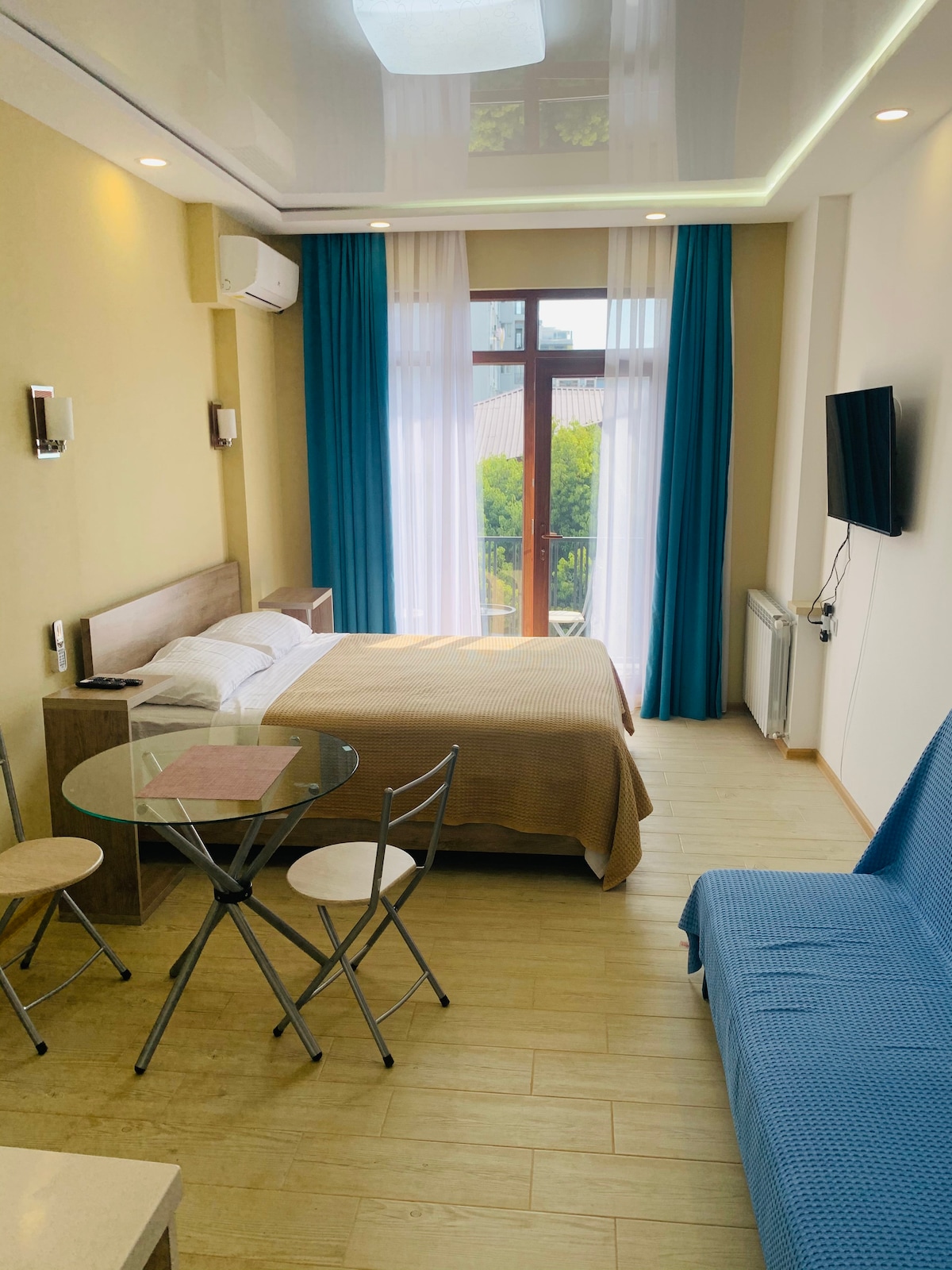 Studio in Chakvi" is an apartment located in the Chakvi settlement, just 1 km away from the beach.Among the amenities, there is a parking lot with video surveillance.The windows offer a view of the garden. Guests have at their disposal a bedroom, a living room, a fully equipped kitchen with an oven and a kettle, as well as a bathroom with a shower and toiletries.Towels and bed linen are provided to the guests. Guests of the "Studio in Chakvi" are offered breakfast for 18 lari per person.