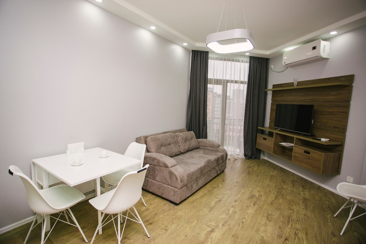 Two-room apartment, in the center of new Batumi, on the first coastline. In which we tried to carry out renovations in a modern style, we placed accents with light in three combinations. Textiles and furniture materials were carefully selected to match each other. We did not skimp on plumbing and household appliances. We really hope that our guests will be satisfied and will definitely come back to us again. For long-term bookings, I am ready to offer an additional discount.))