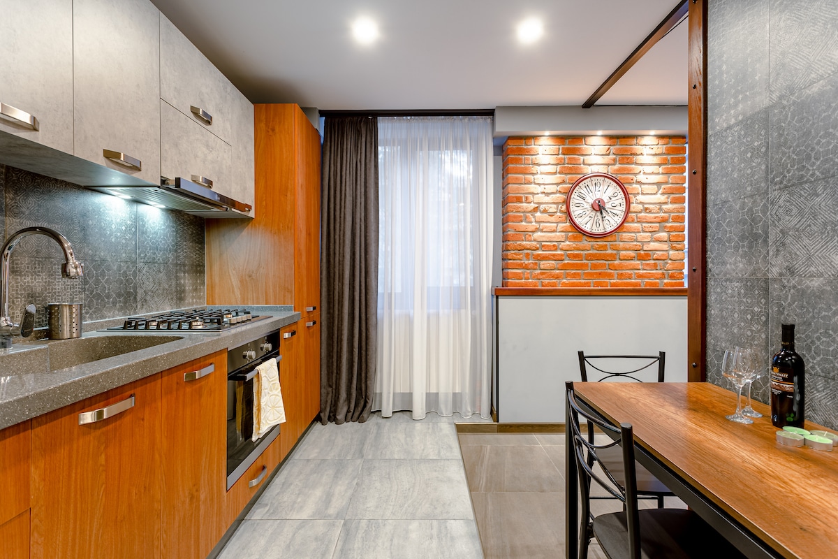 This is a comfortable renovated apartment with exposed brick that has a true Tbilisi feeling. This studio has a transparent bathroom with modern bathtub, king size bed, Chesterfield sofa and etc. The Space (78 sq.m) fits 2 & is located on Old Tbilisi district, on parallel street of main avenue of Georgia Shota Rustaveli Ave. High speed WIFI Internet & IPTV is provided free of charge. Apartment is also well located for transport Metro Freedom Square & Rustaveli stations are walk distance.