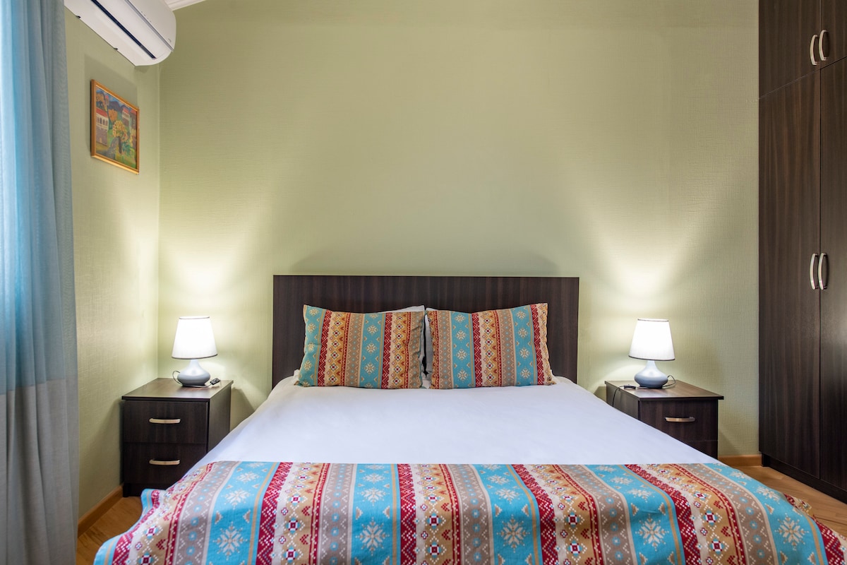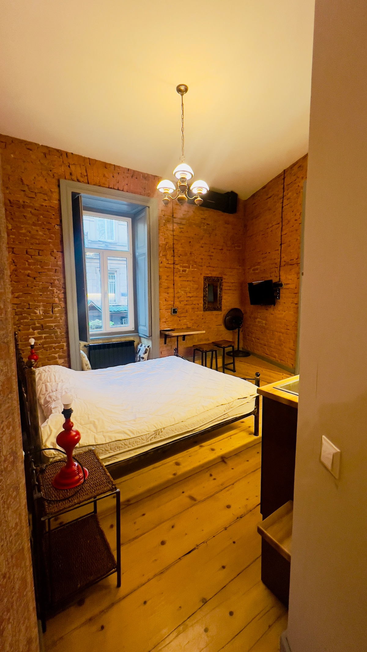 Hotel type studio rooms, (shared kitchen receptipon) Best central location in the Tbilisi, in the heart of Marjanishvili area which includes many shops, restaurants and cafes below the apartment. The nearest tube/metro station is 5 minute walk, Marjanishvili station Nearest bus station 2 minute walk. You can walk to any where Layout 1st master bedroom: 1 double bed ( bathroom ) Each room has its own fridge, kattle, bathroom, cleaning service +5 usd cash breakfast.