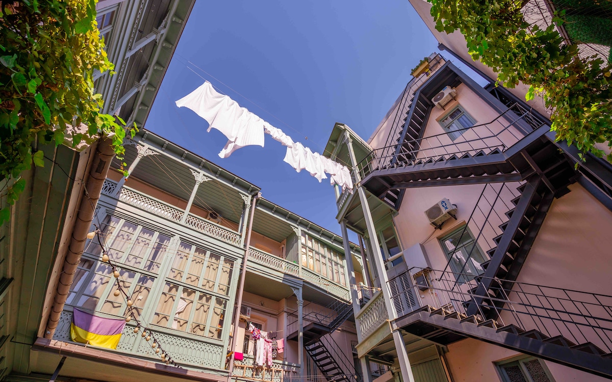 Our very unique and special apartment is located in the historic building in the most cental place of Tbilisi. Most of the attractions and touristic sighs are easily accessible by foot. The apartment has terrace with the view of symbols of tbilisi: Tbilisi Satelite, Funicular, Mama daviti and mountain Mtatsminda. While being located in the heart of Tbilisi, the street itself is very peaceful and quiet at night.