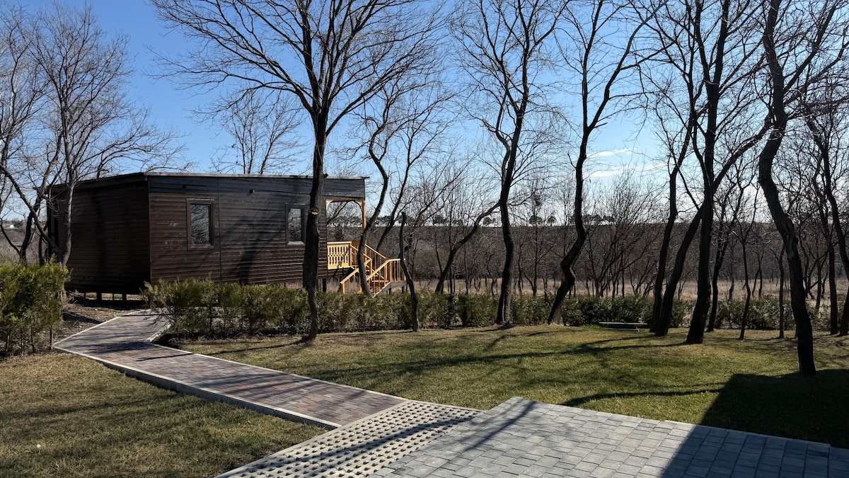 A Warm, Magical Escape With Sauna & Panoramic Glass Bedroom and Playstation 5. Escape to our romantic Wellness Cabin with panoramic glass bedroom, private wood-burning sauna, cozy fireplace, and magical outdoor lights. Perfect for couples, nature lovers, and peaceful getaways near Tbilisi. WARNING: this is not a hotel, you'll need to start a fire by yourself! make sure you can operate the cabin before booking!